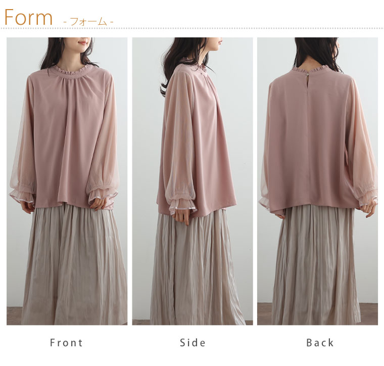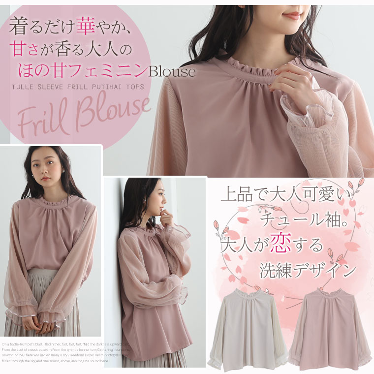 フリル×チュールでほんのり甘くて可愛い上品デザインブラウス