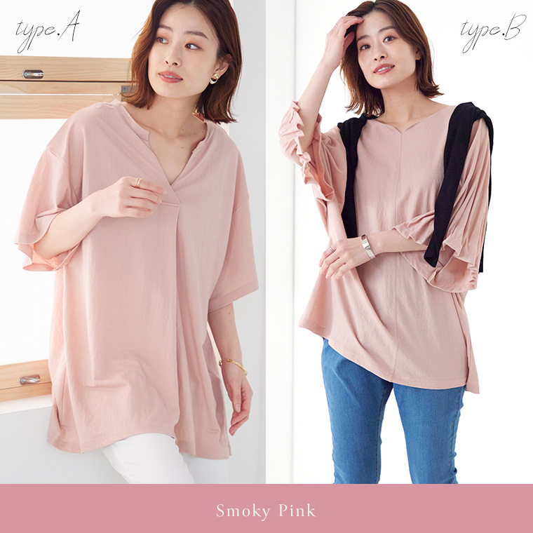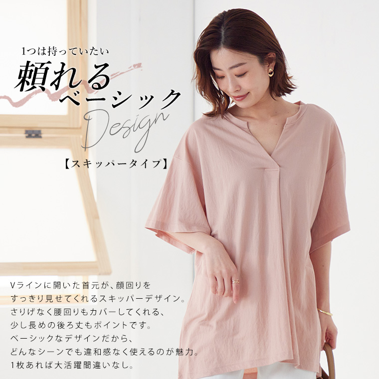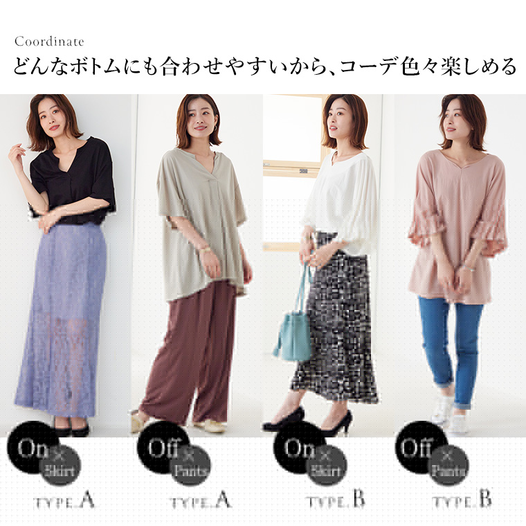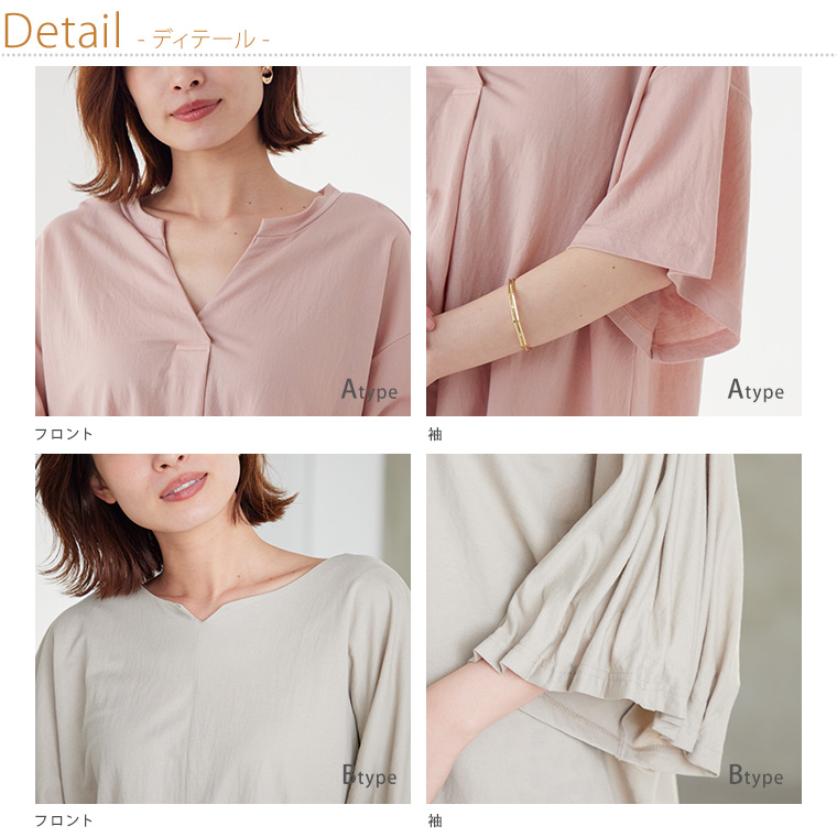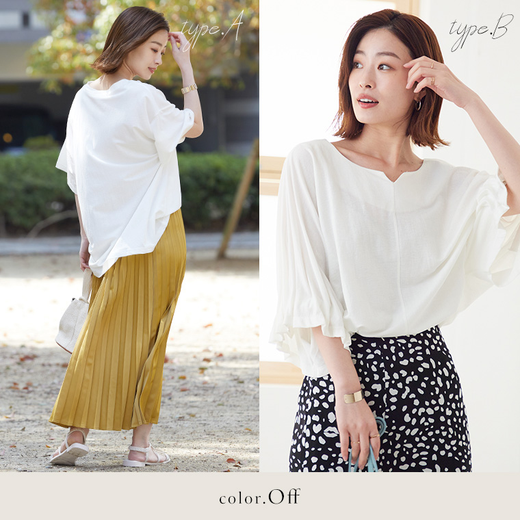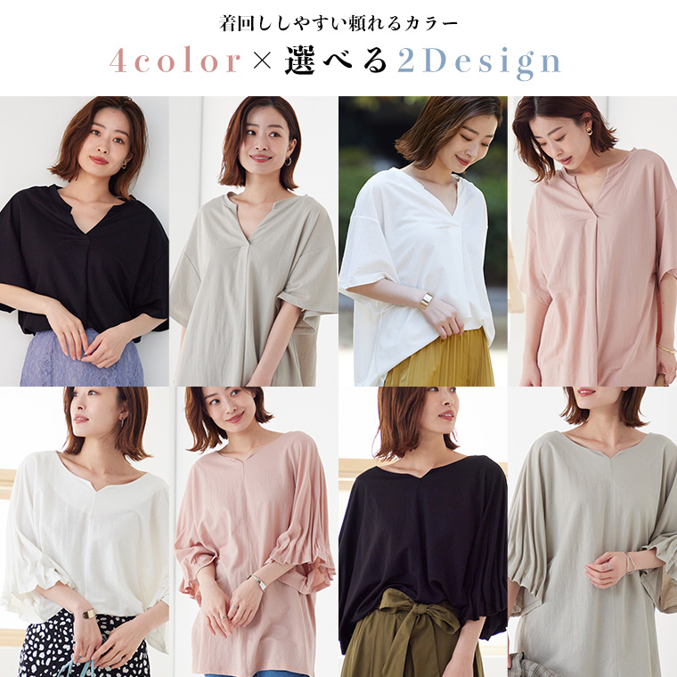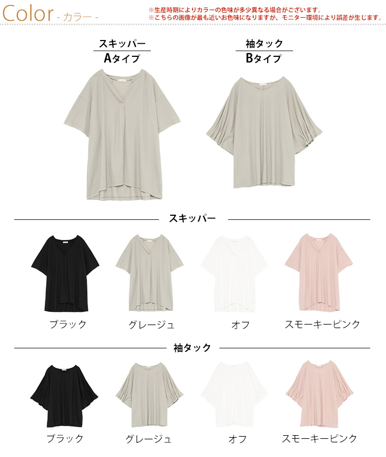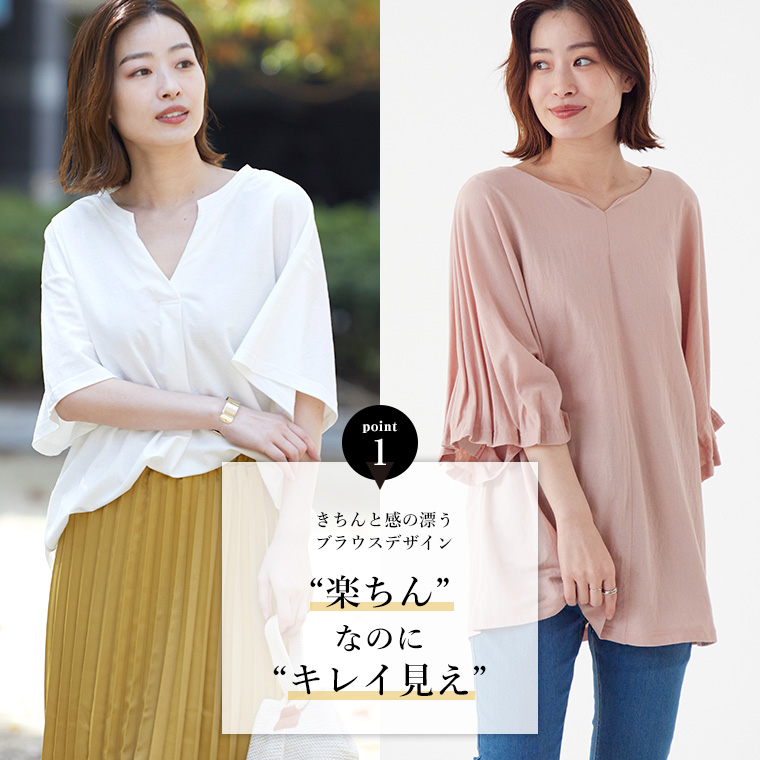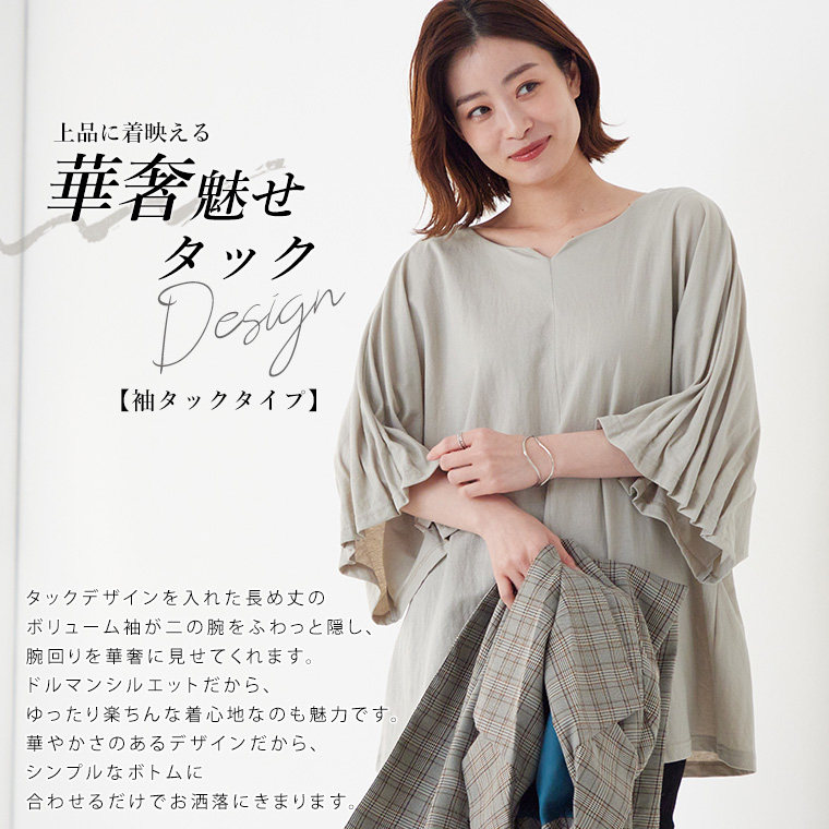 ひんやり冷感選べるスキッパー&タック袖Tブラウス