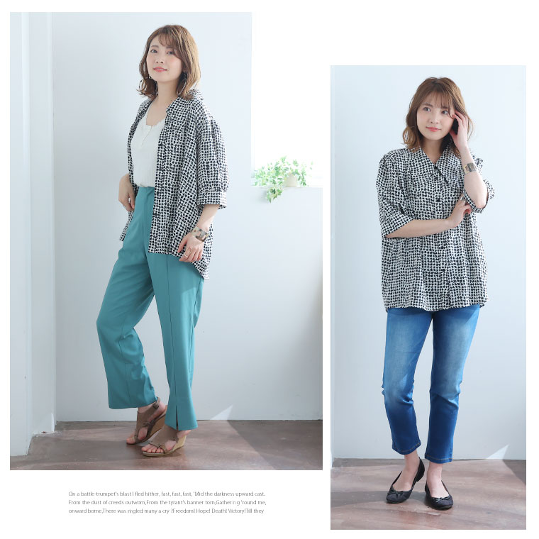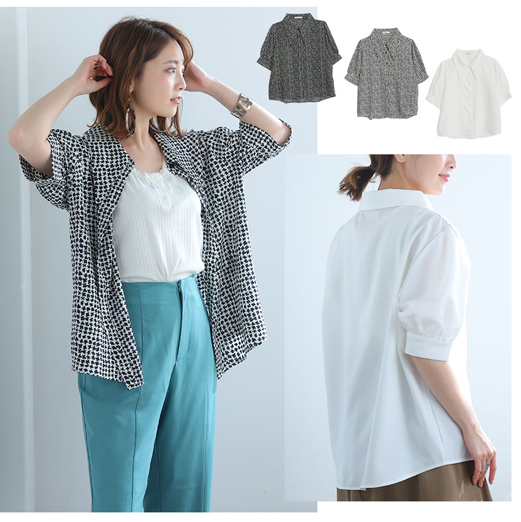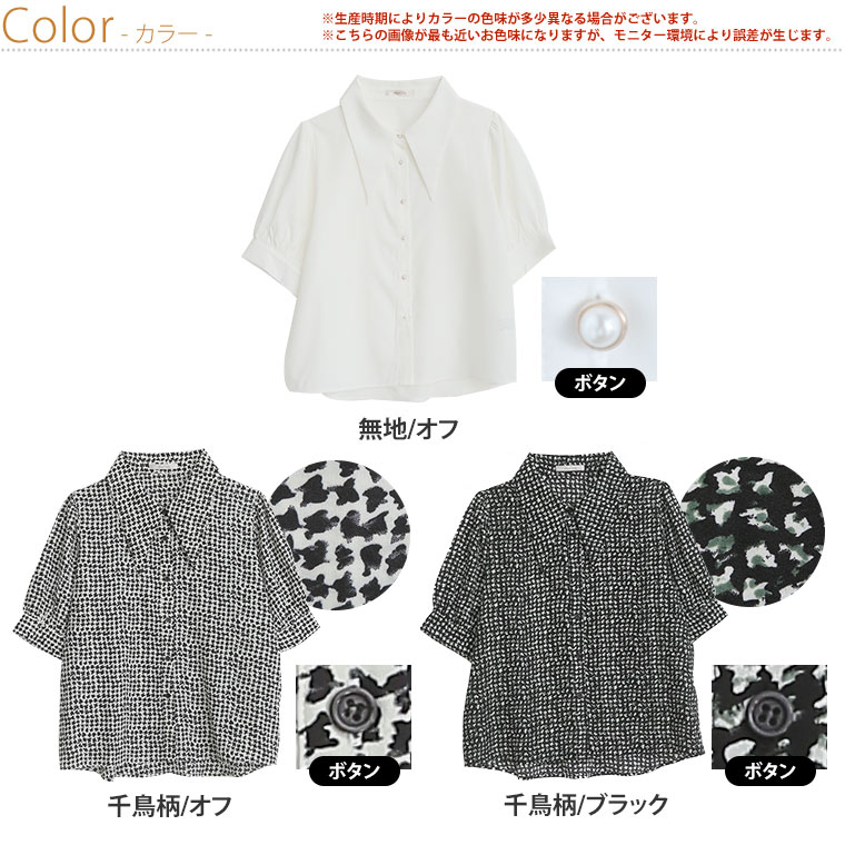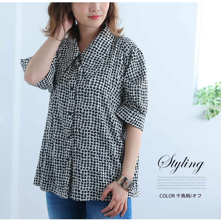 無地と千鳥柄から選べる三角襟シャツ