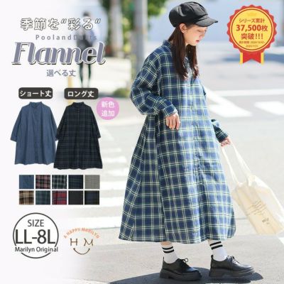 新色追加!! 身長別選べる2丈 フランネル チェック 細魅せ シャツワンピース