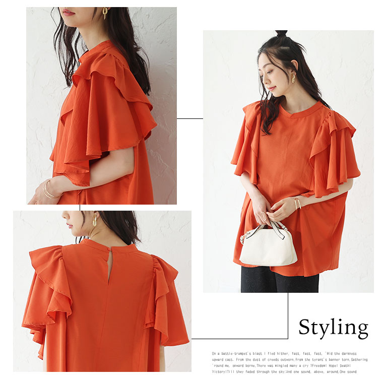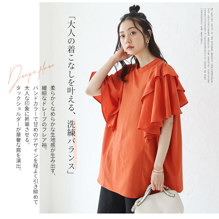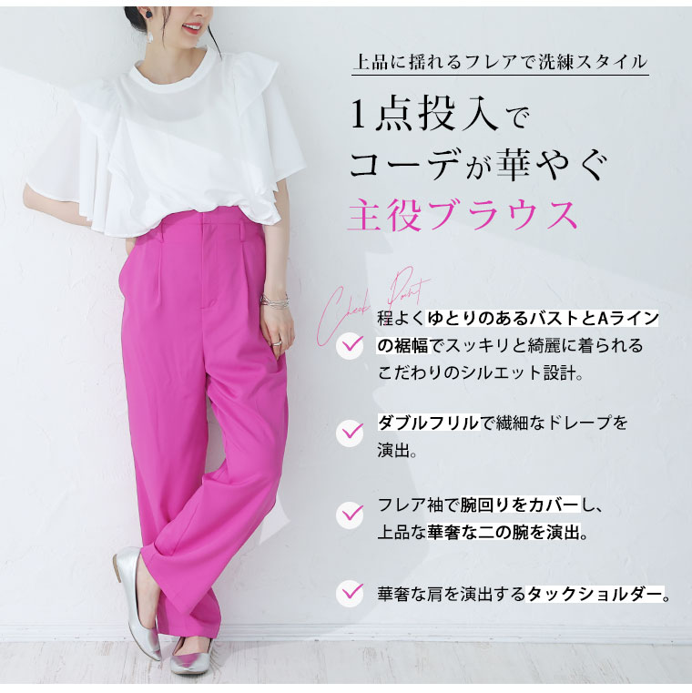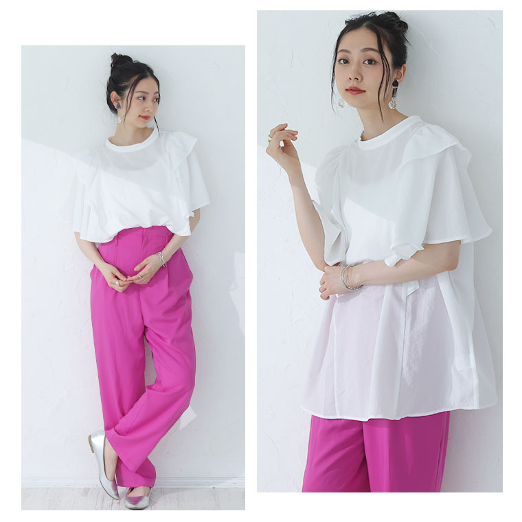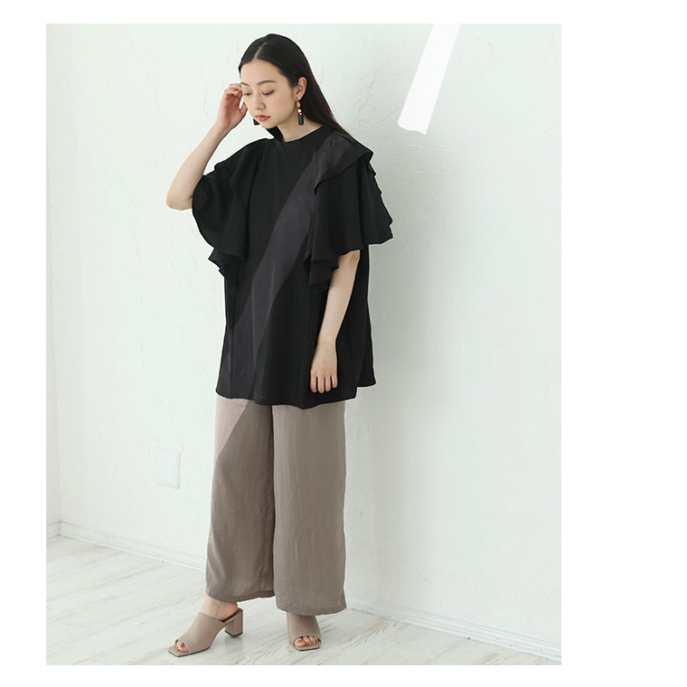 シルキージョゼット生地できれいにスタイリングできるトップス