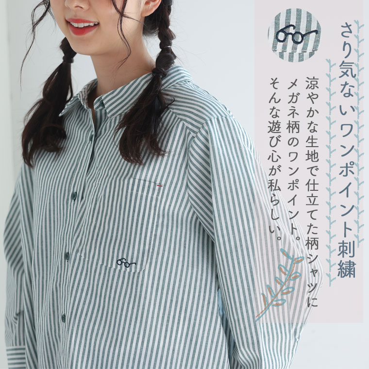 涼やかな生地に眼鏡柄のワンポイントで遊び心を。