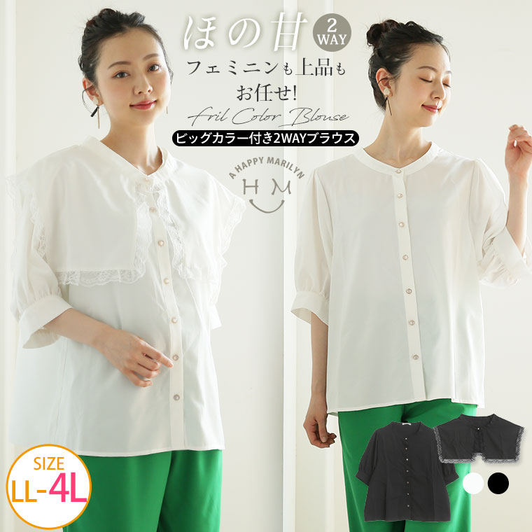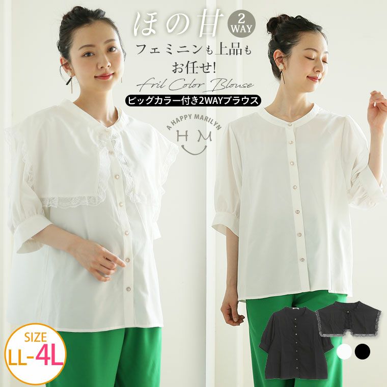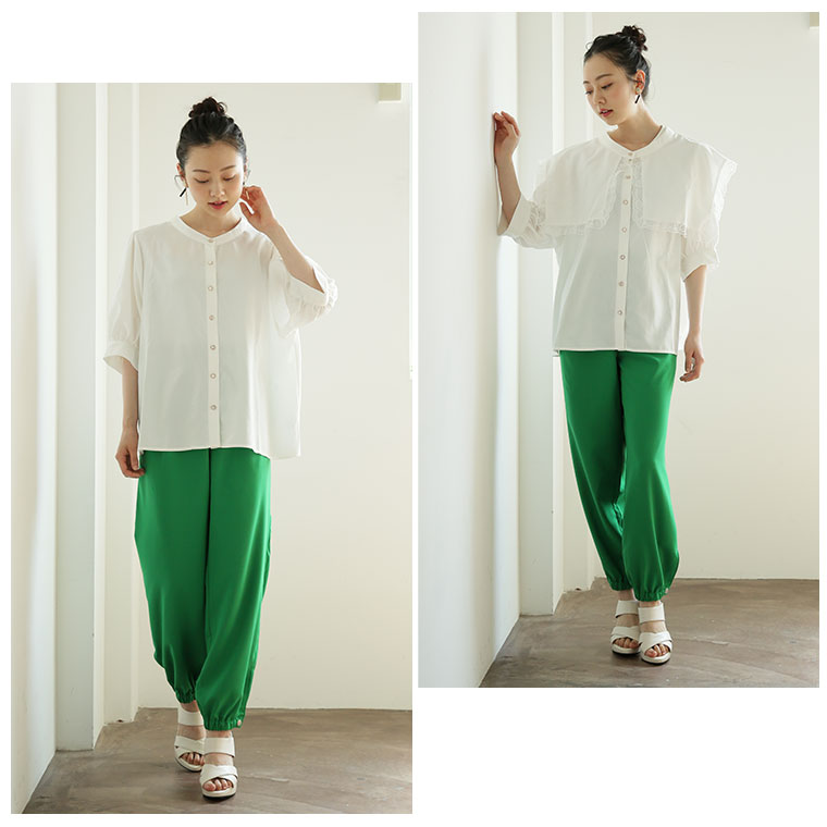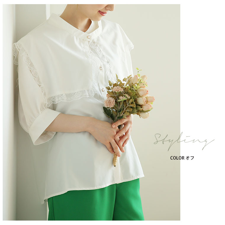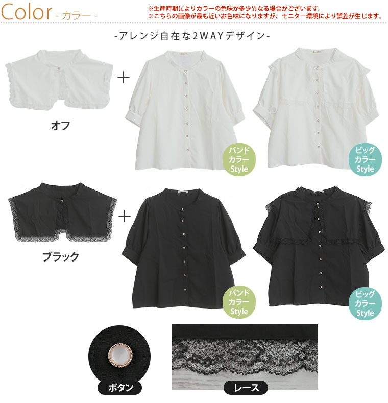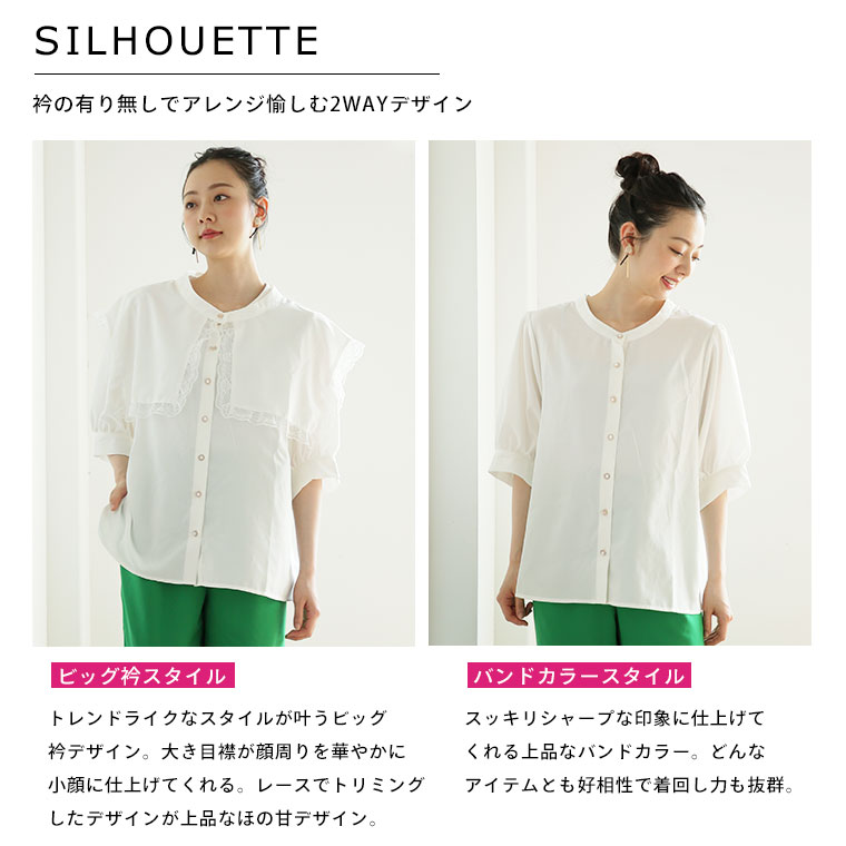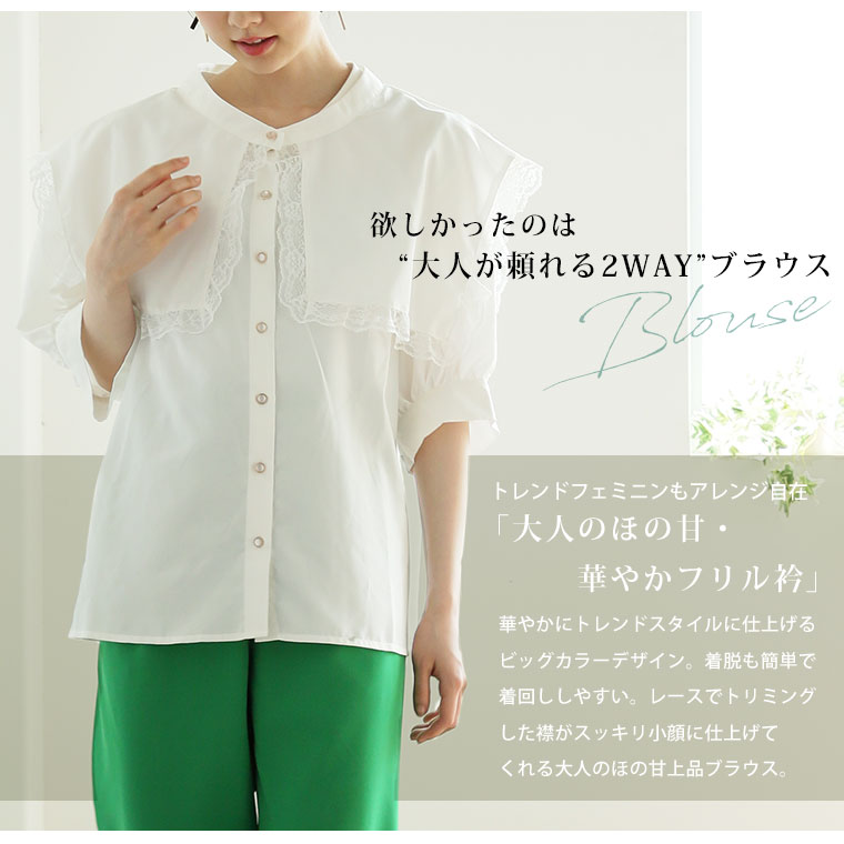 レース襟をつけて2WAYスタイルを楽しめるフェミニンブラウス