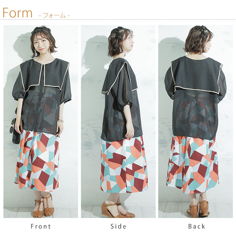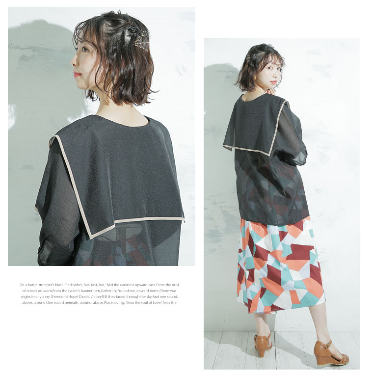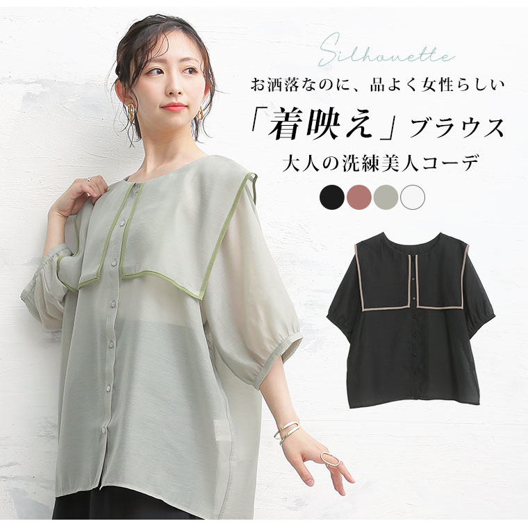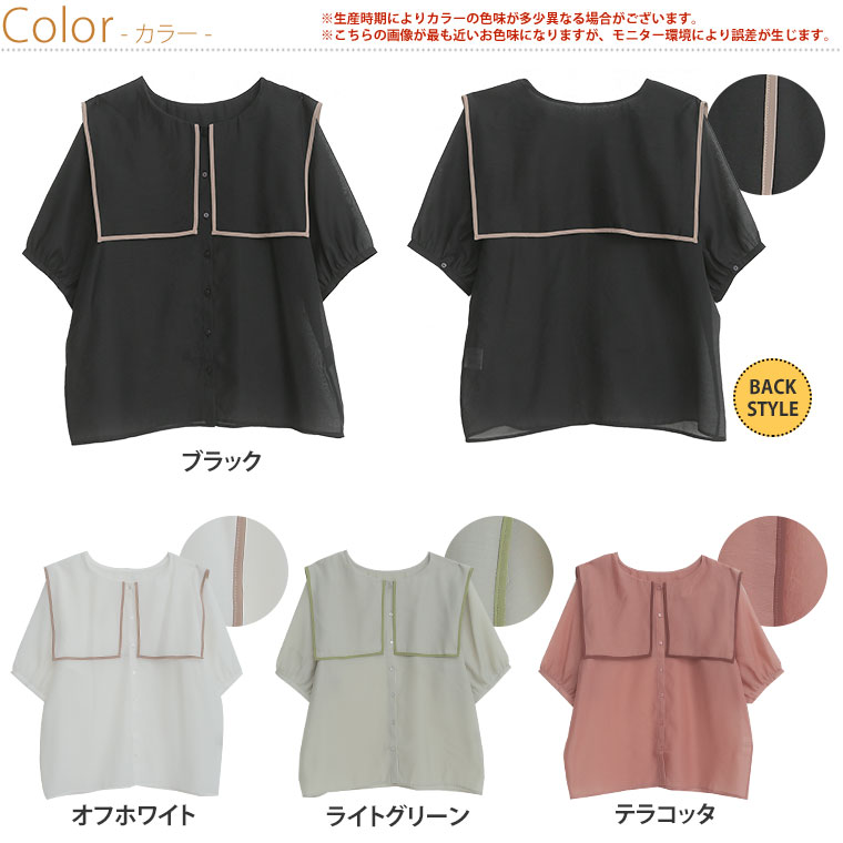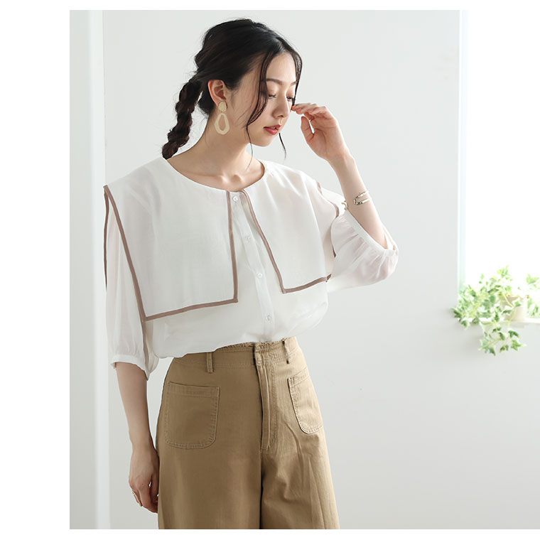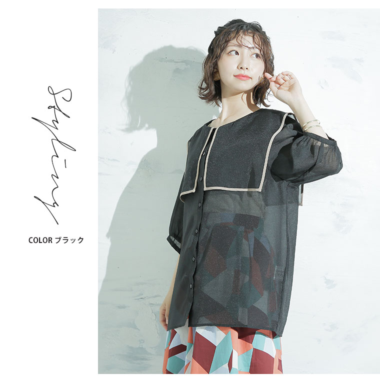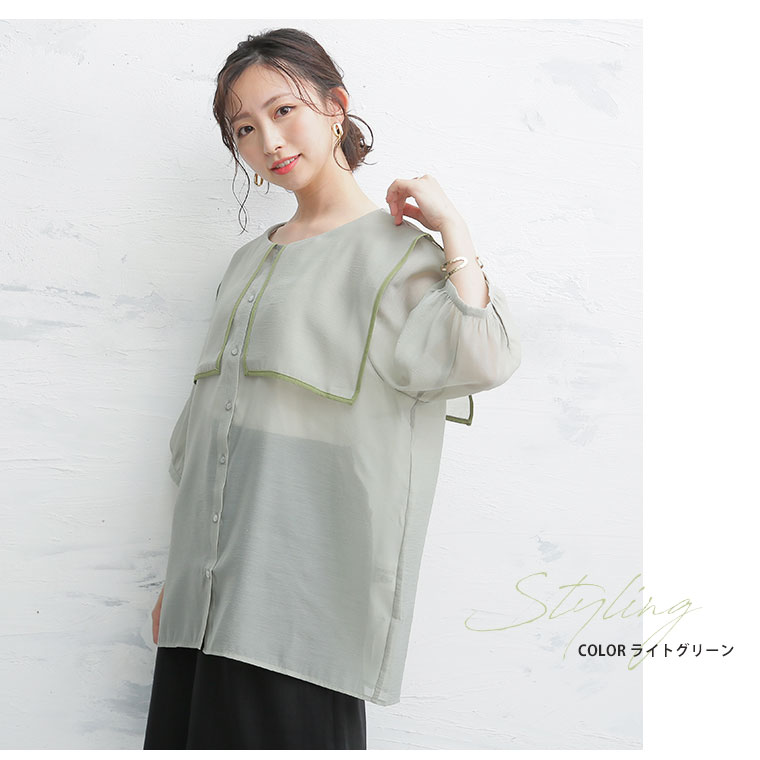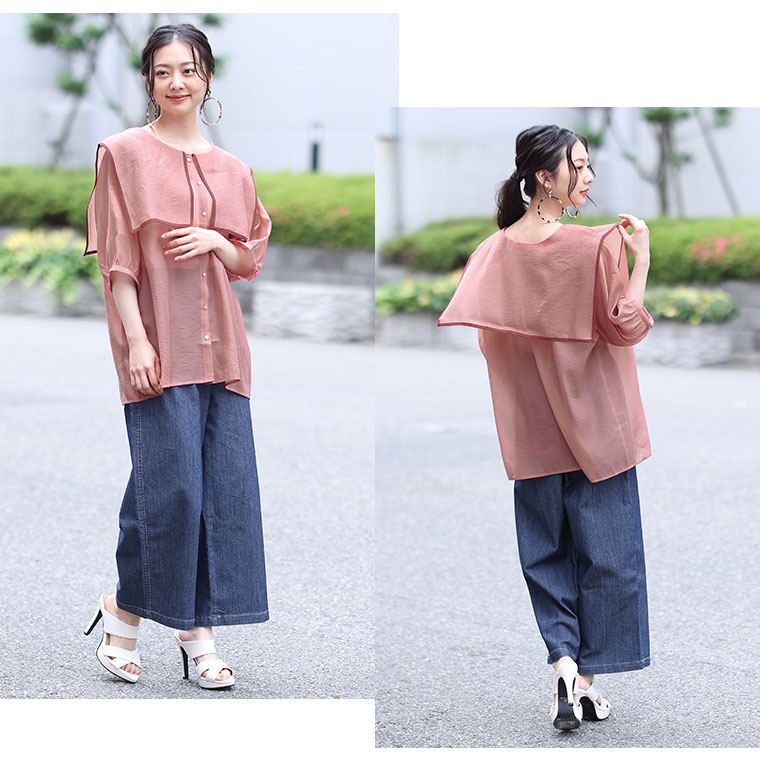 セーラーカラーで後ろ姿もかわいいシアーブラウス
