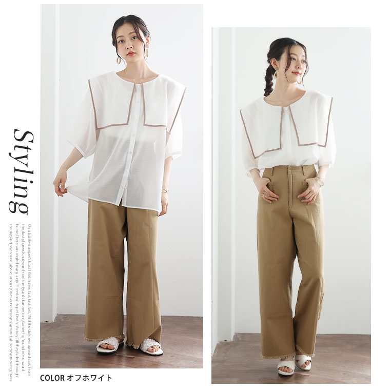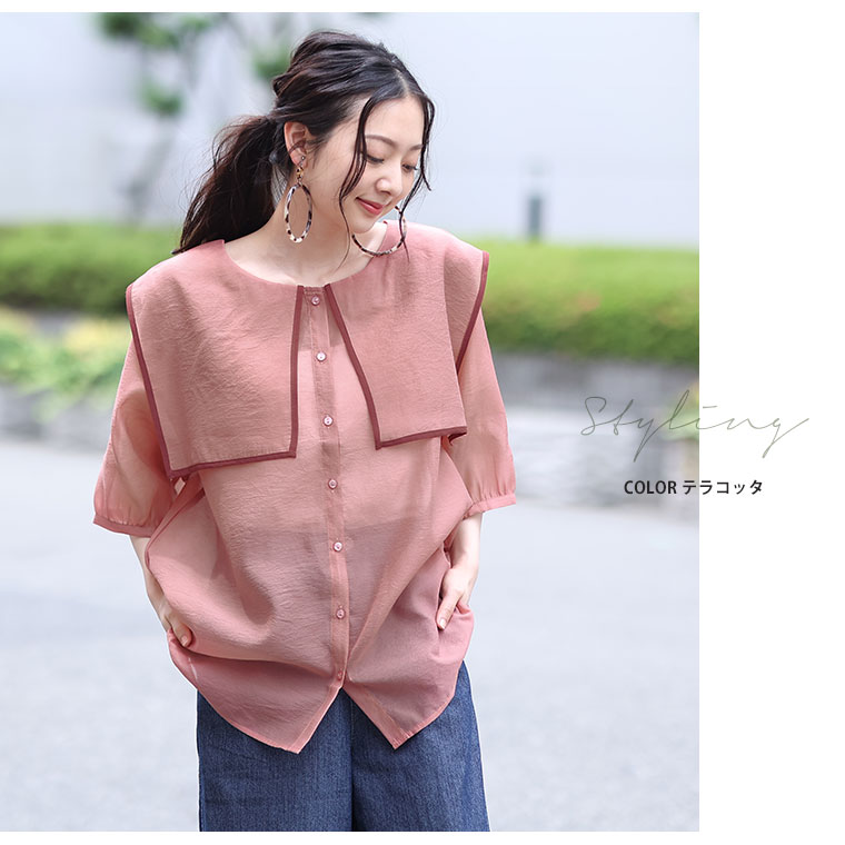トップス シャツ LL 3L 4L 5L 6L 夏 夏物 夏服 夏用 ぽっちゃり ゆったり リン きれいめ 上品 華やか 高見え エレガント カジュアル ナチュラル プラスサイズ Rin パイピング セーラーカラー ブラウス
