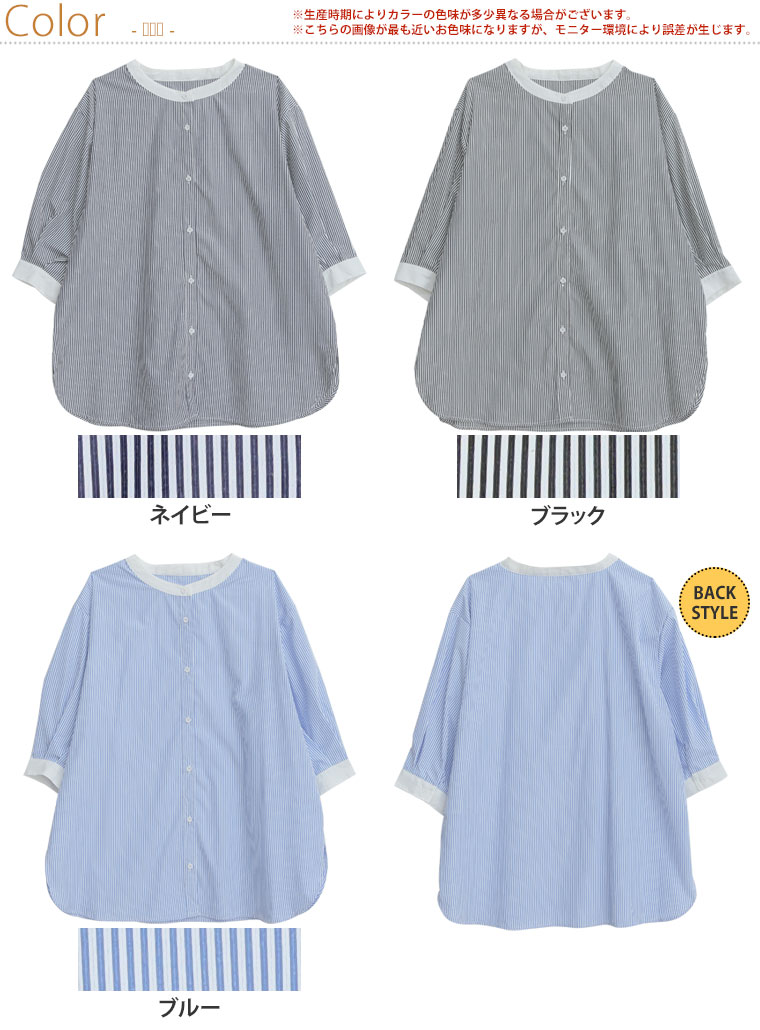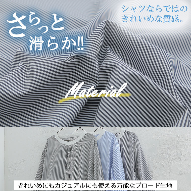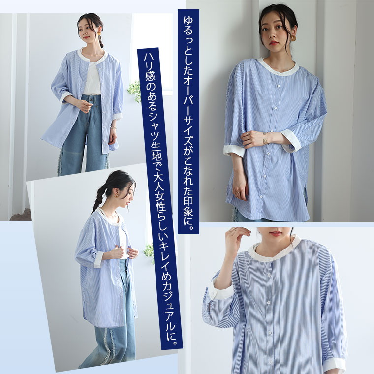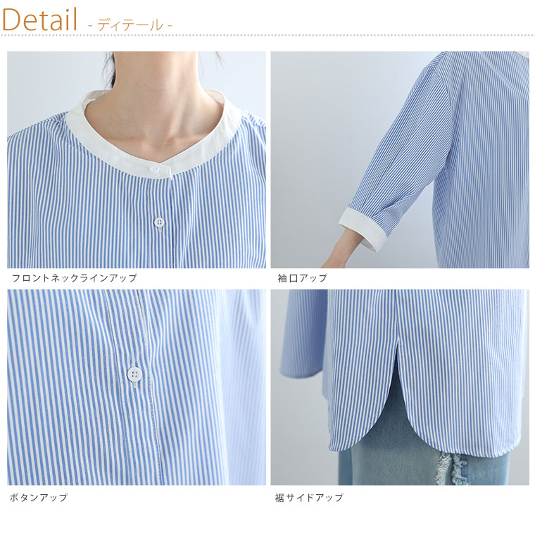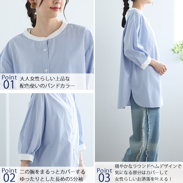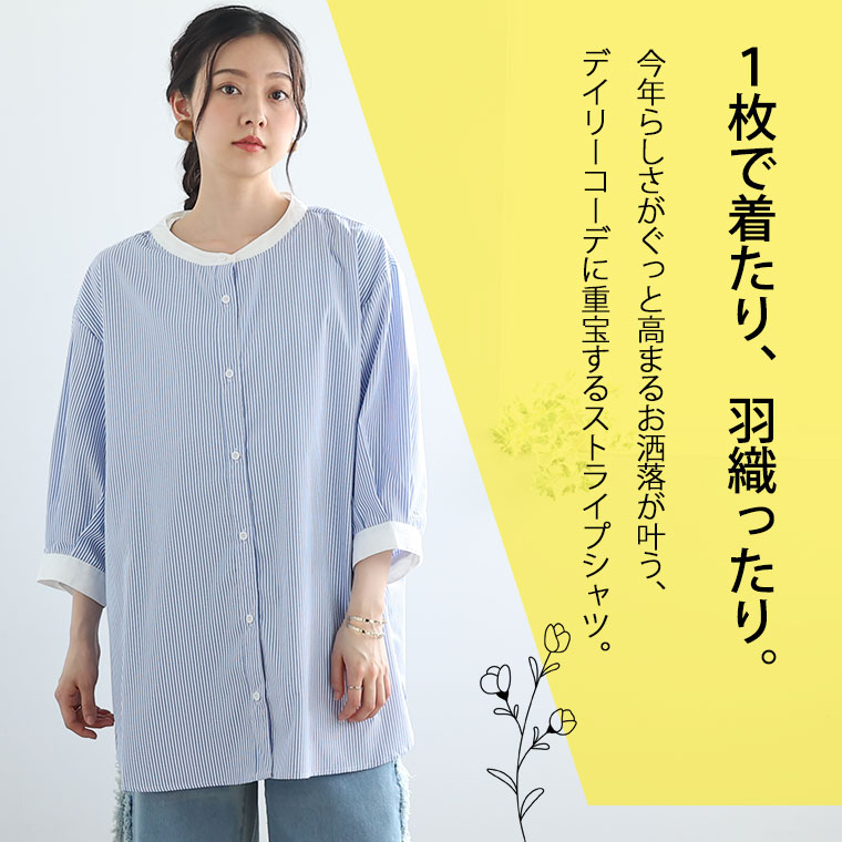 バンドカラー5分袖ストライプシャツ