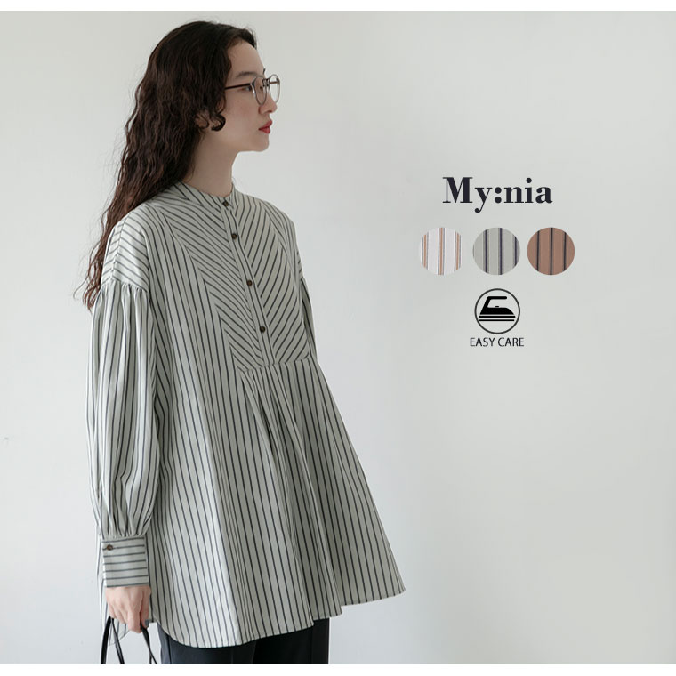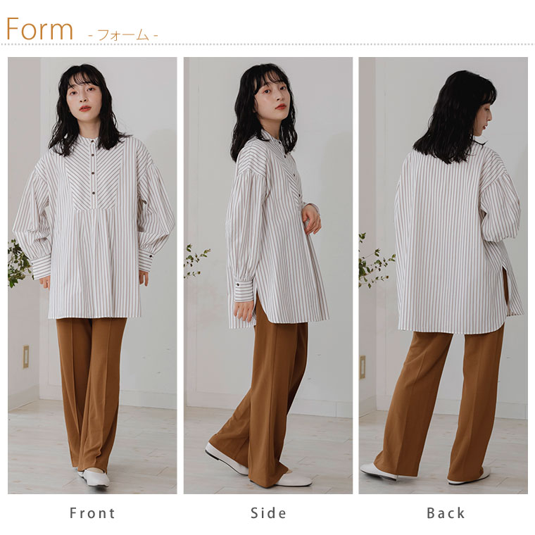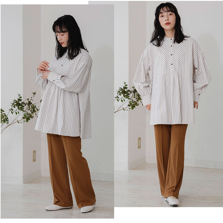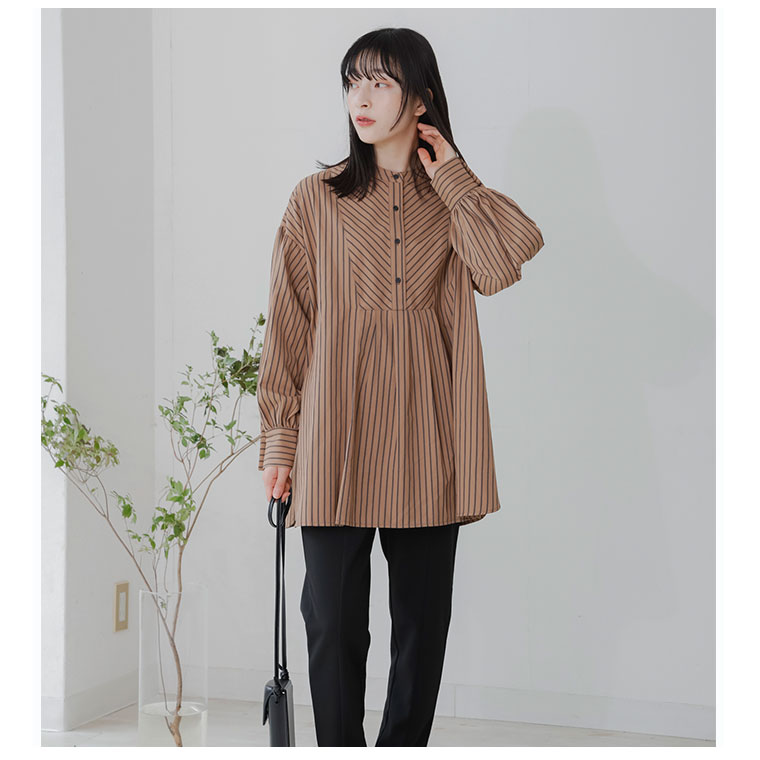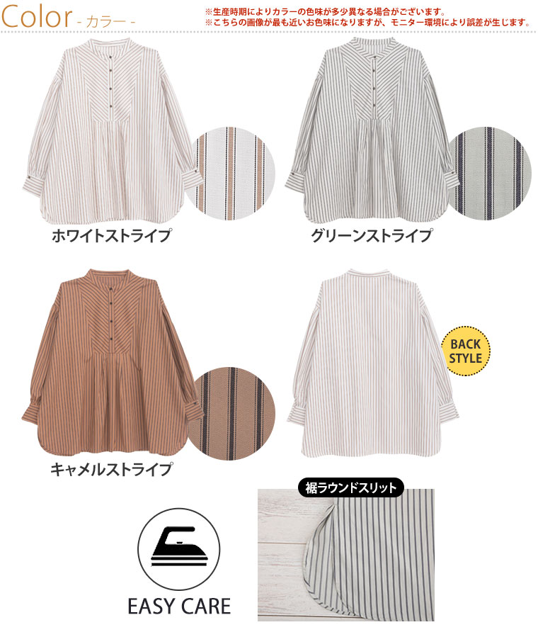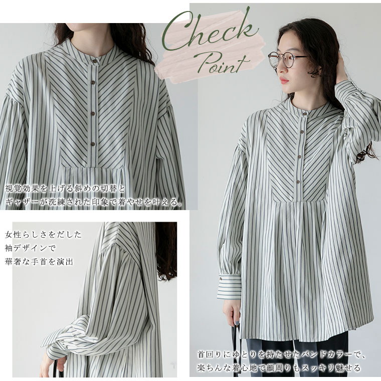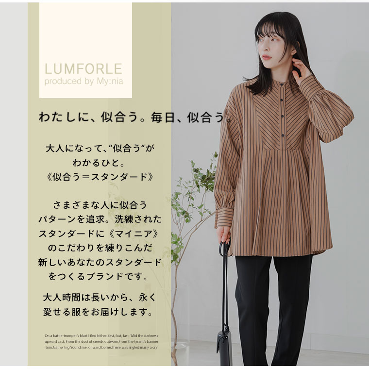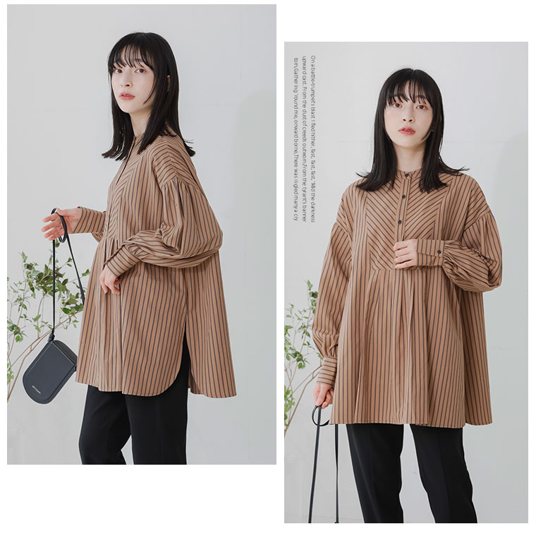 4. 大きいサイズ 【LUMFORLE produced by My:nia】ストライプ袖 ボリュームデザイン シャツ