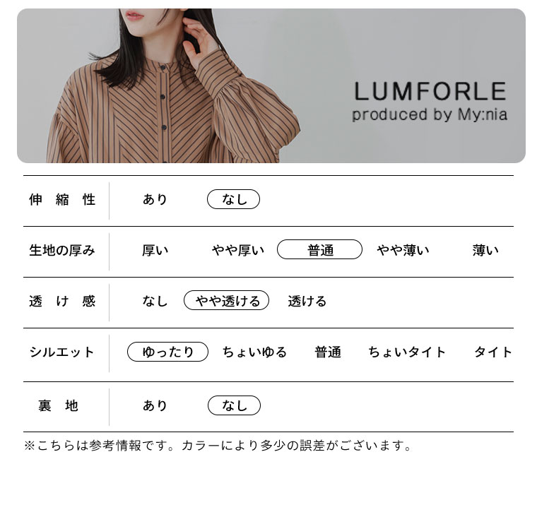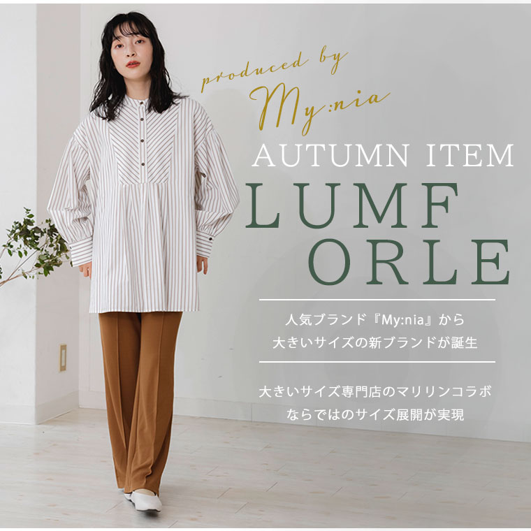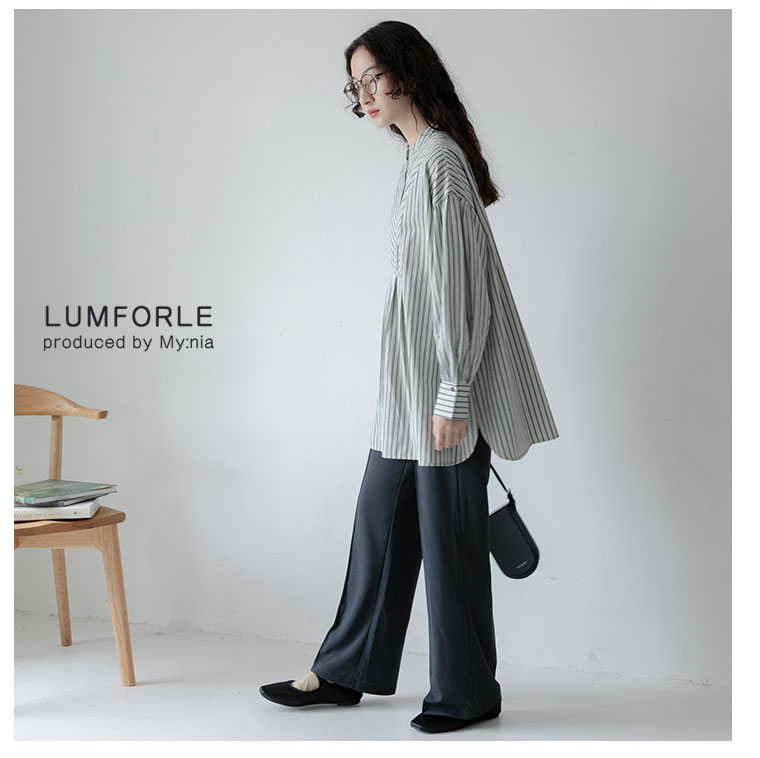大きいサイズ 【LUMFORLE produced by My:nia】ストライプ袖 ボリュームデザイン シャツ