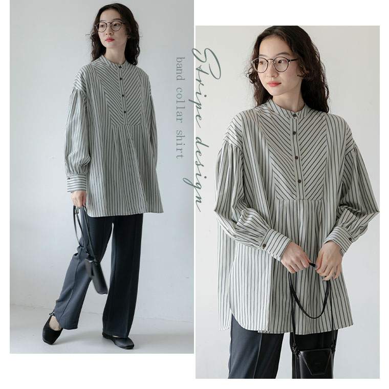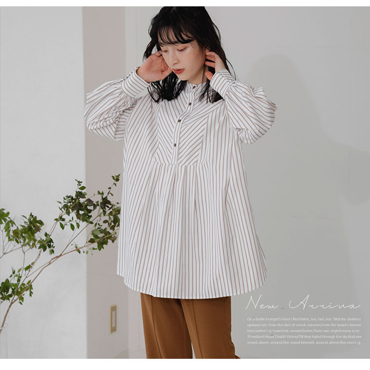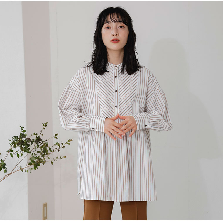6. 大きいサイズ 【LUMFORLE produced by My:nia】ストライプ袖 ボリュームデザイン シャツ