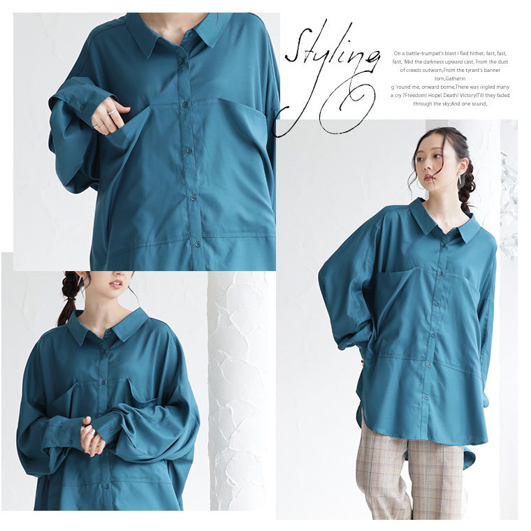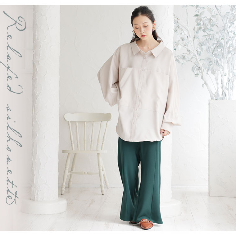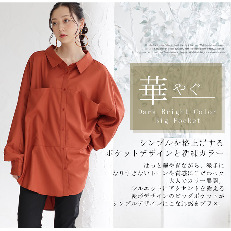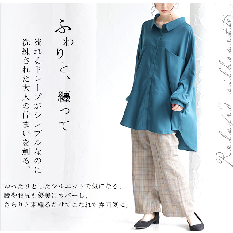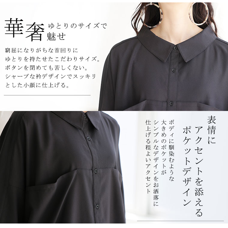 トップス ブラウス LL 3L 4L 秋 秋物 秋冬 ぽっちゃり ゆったり かわいい おしゃれ カジュアル ナチュラル プラスサイズ 【effortless mode】エアリージョーゼット ヒドゥン ツーポケ ルーズシャツ