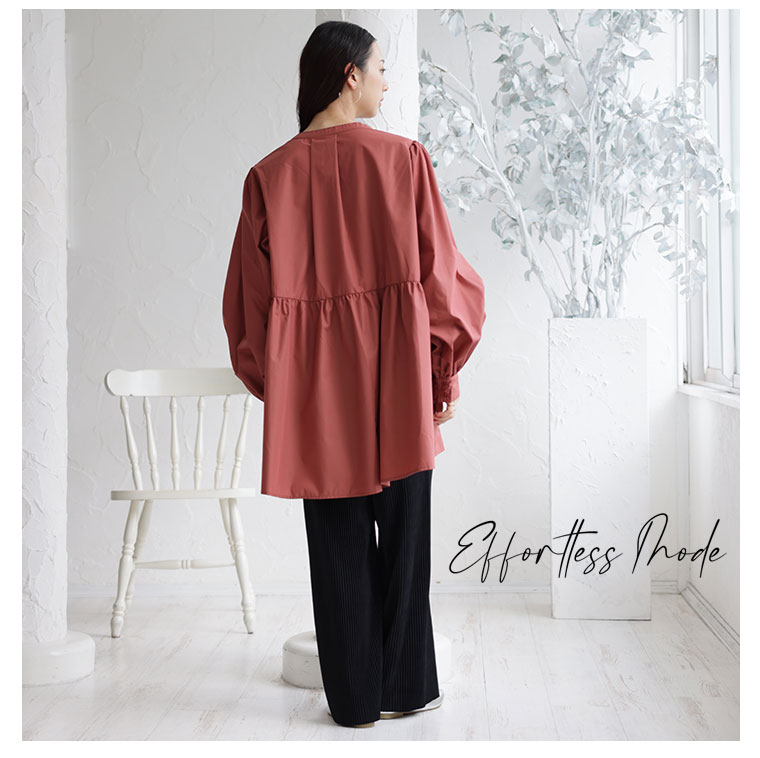 4. 大きいサイズ 【effortless mode】T/Cタイプライター ワンティアード シャツブラウス チュニック