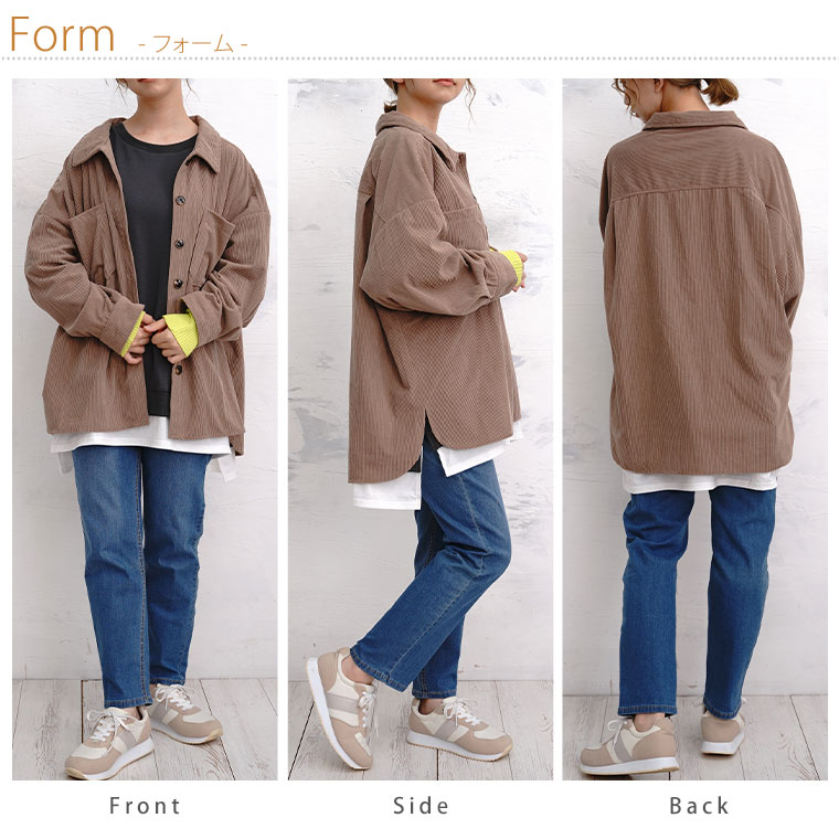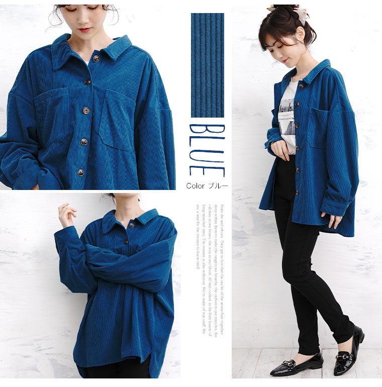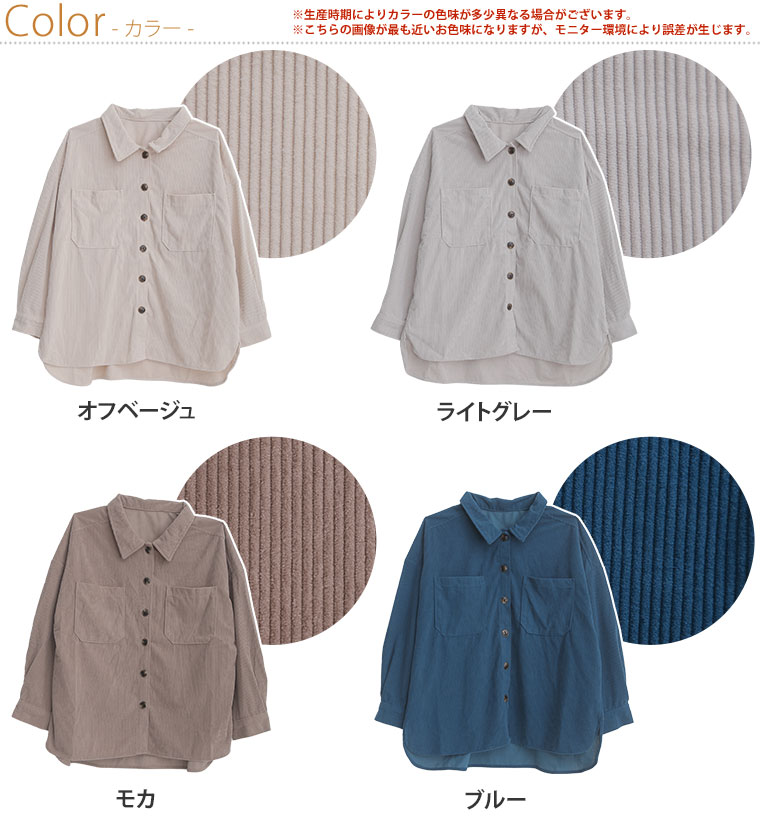 5. 大きいサイズ なめらかタッチ の細魅せ コーデュロイ ゆるシャツ