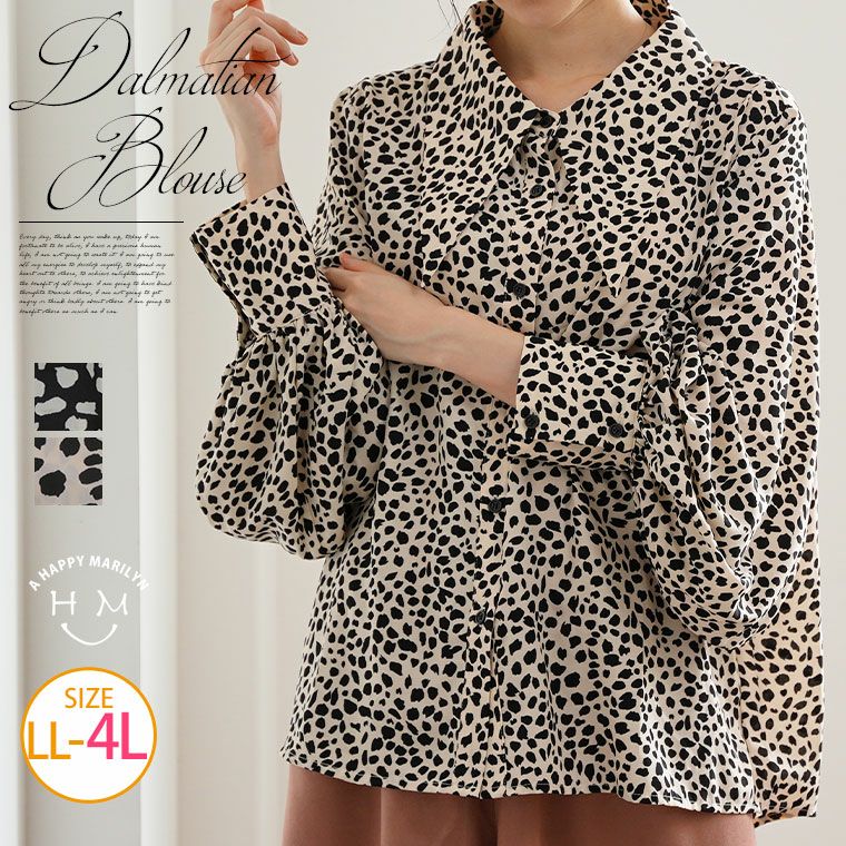 ダルメシアン柄プリントボリューム袖シャツ