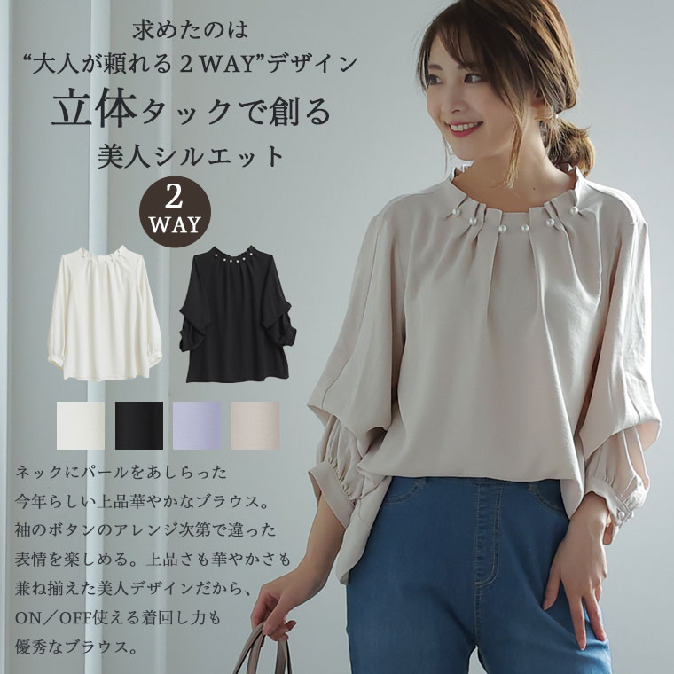 大人が頼れる袖2WAYデザイン 立体タックで創る美人シルエット