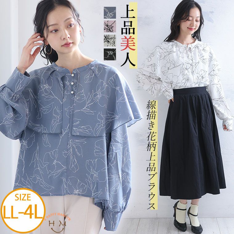 気品あふれる線画タッチのフェミニンブラウス