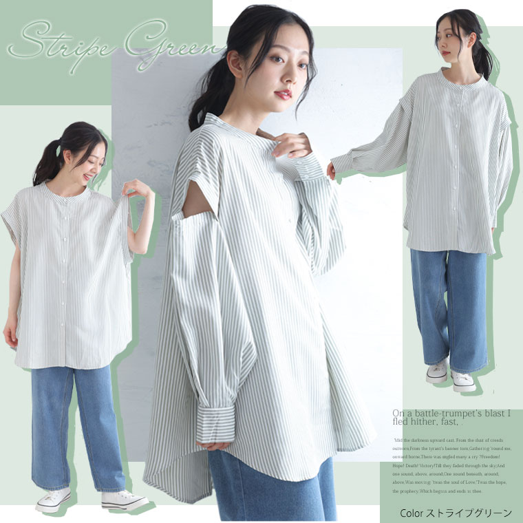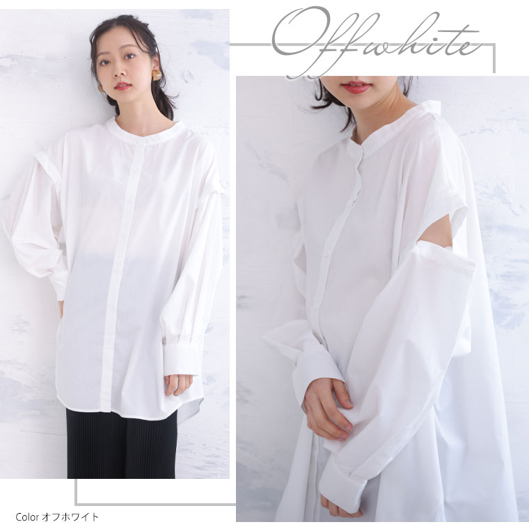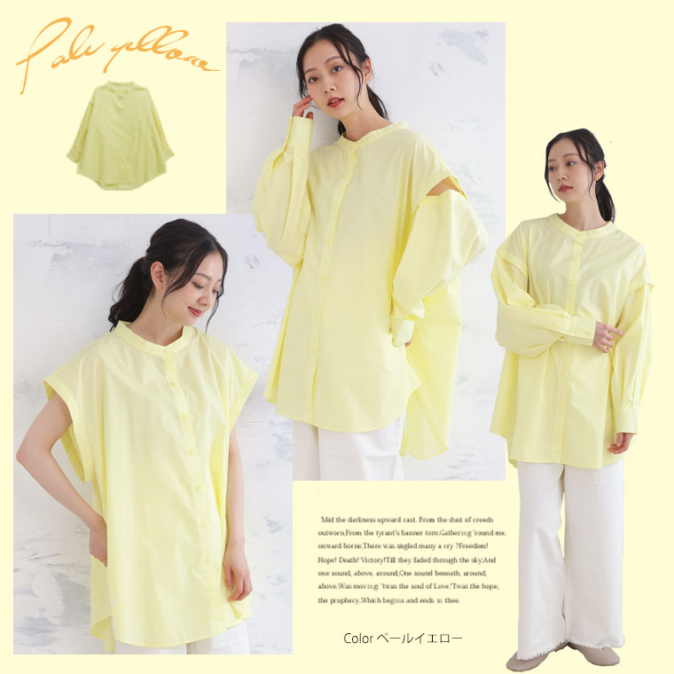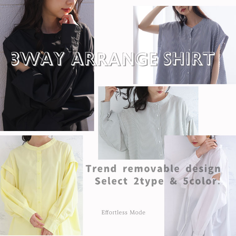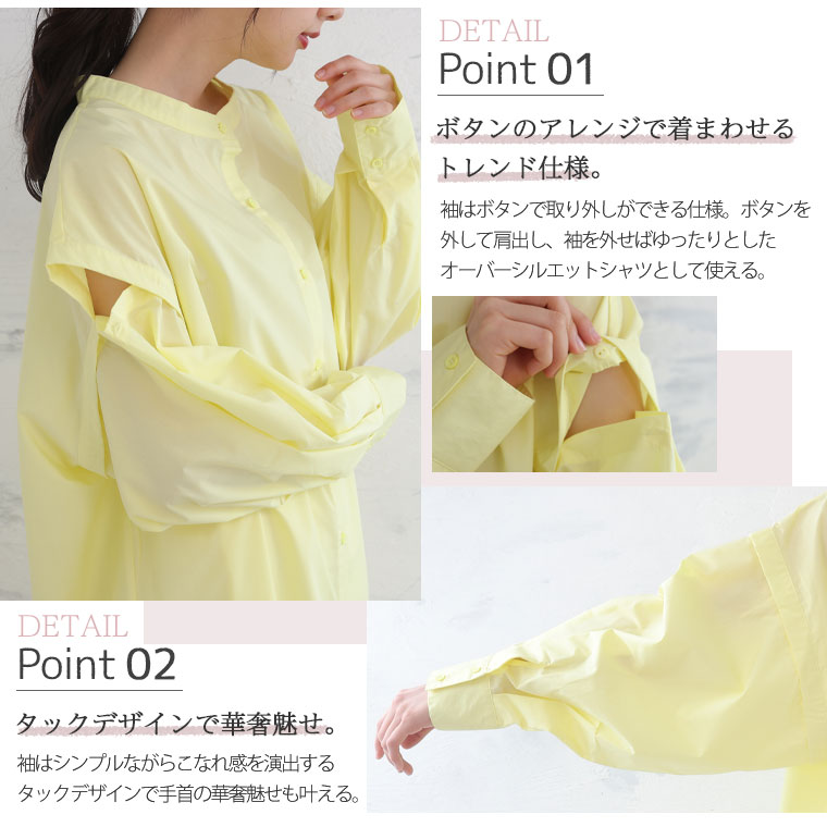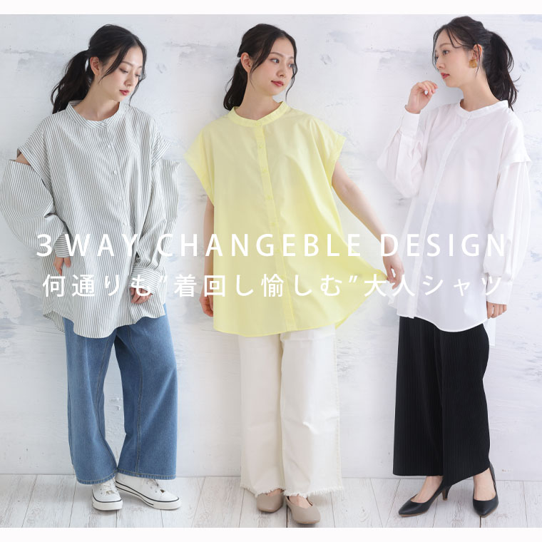 袖のボタンでシルエットが変えられる 3wayTCタイプライターリムーバルスリーブシャツ
