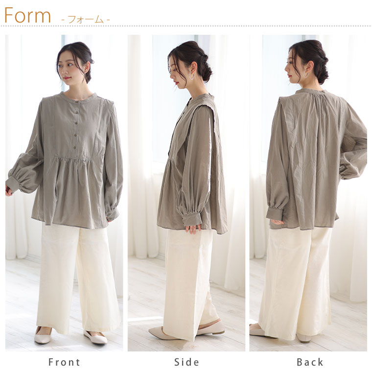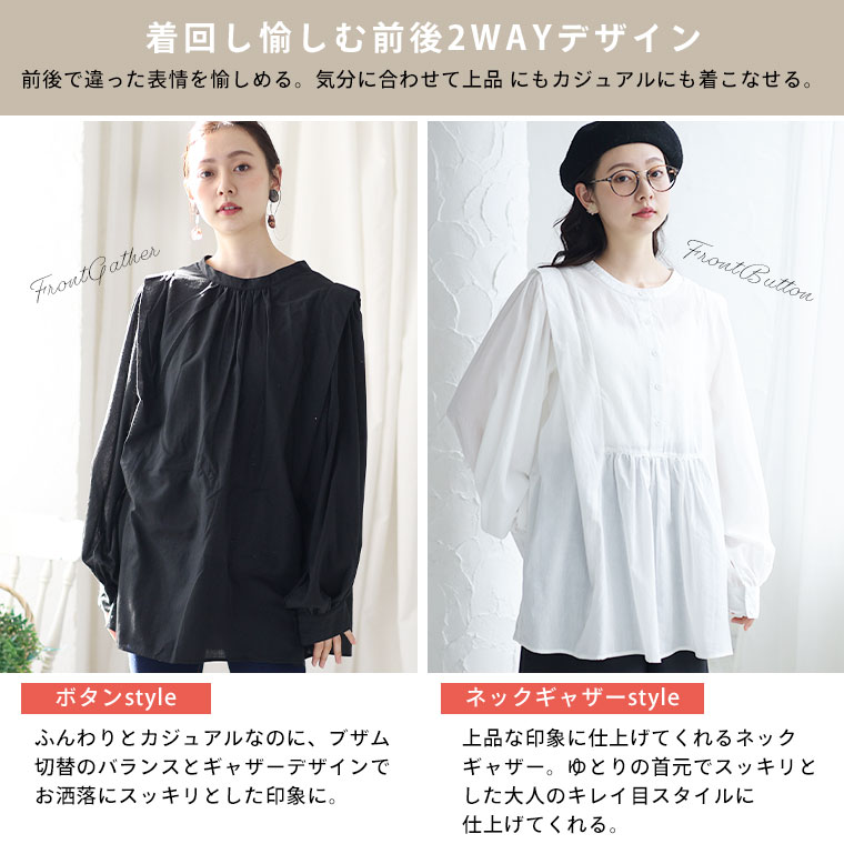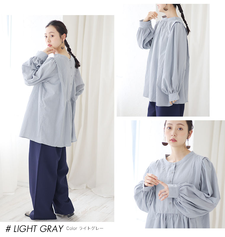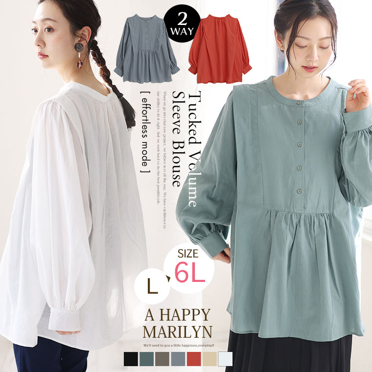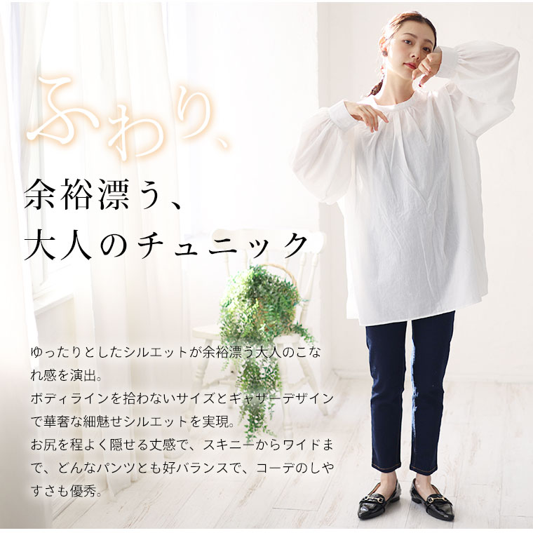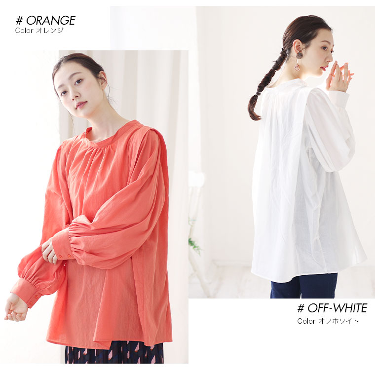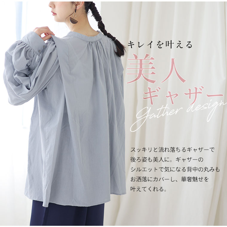 洗練デザイン ギャザータック×ボリュームスリーブ ブラウス