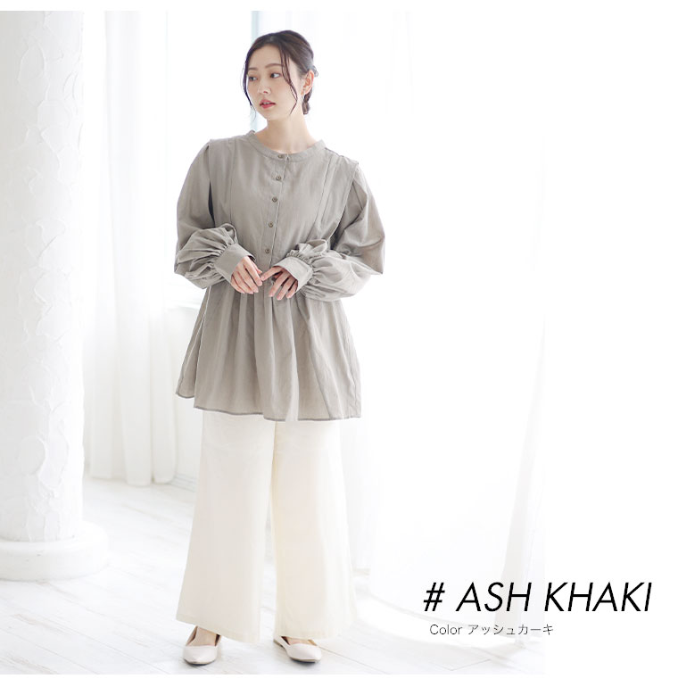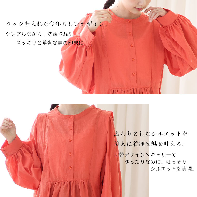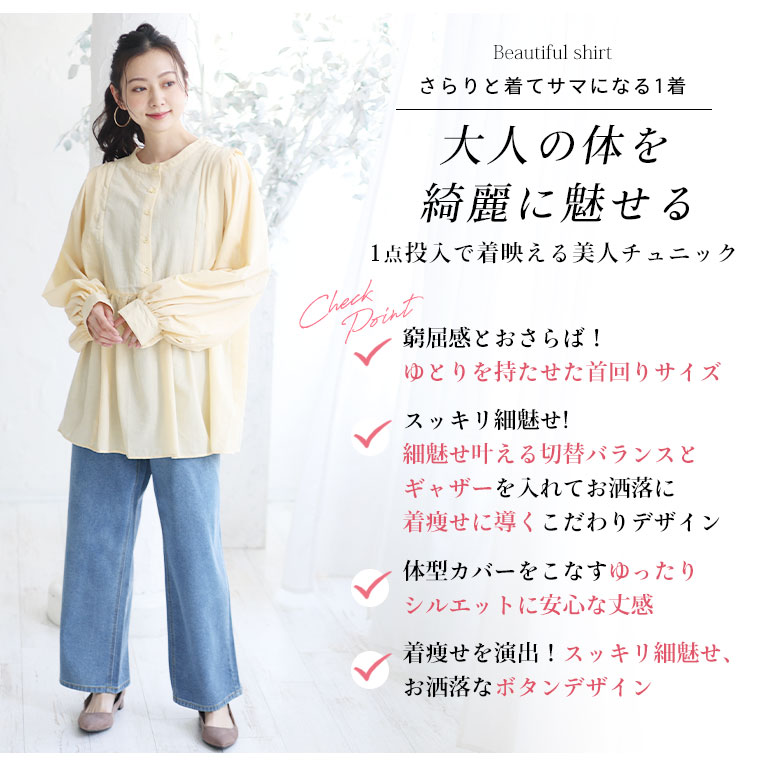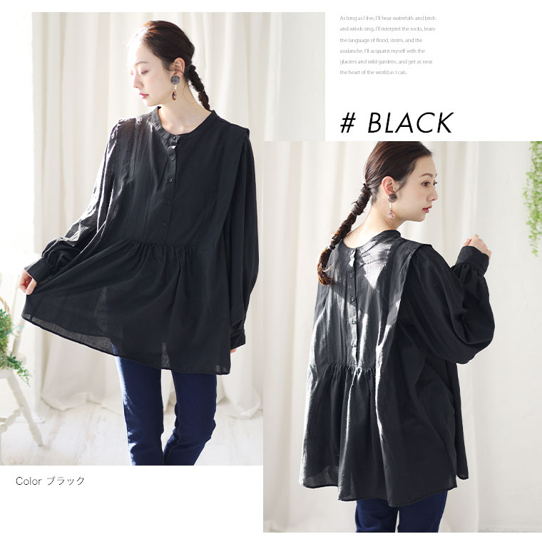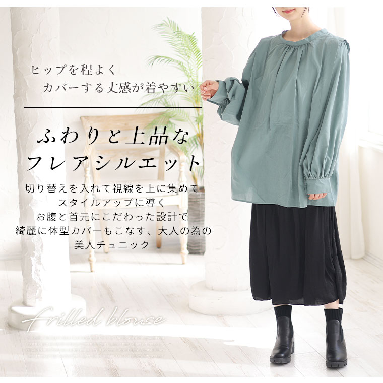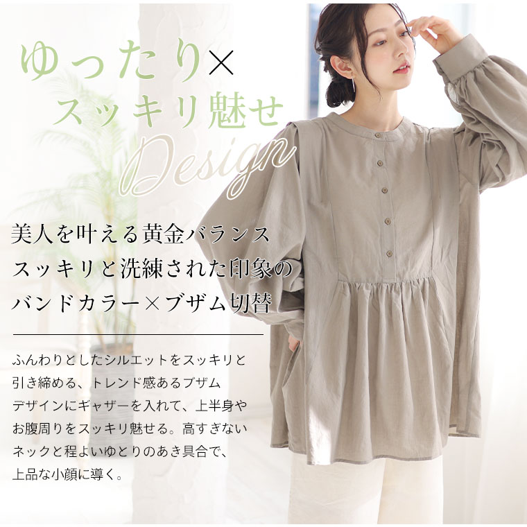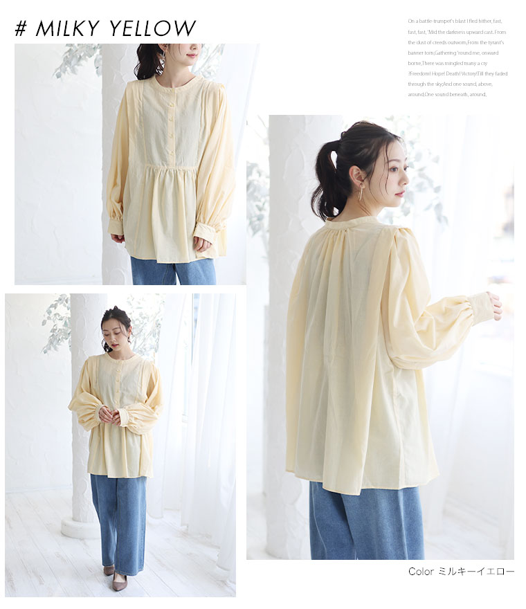 洗練デザイン ギャザータック×ボリュームスリーブ ブラウス
