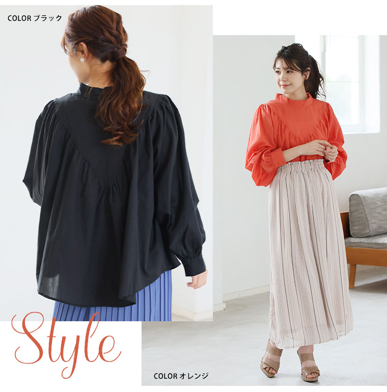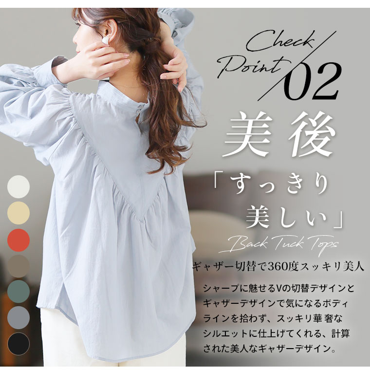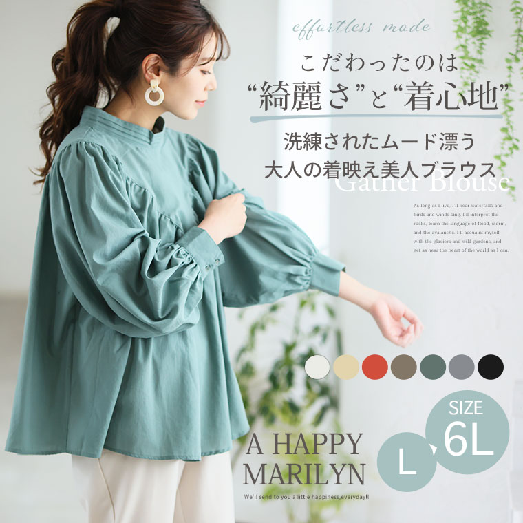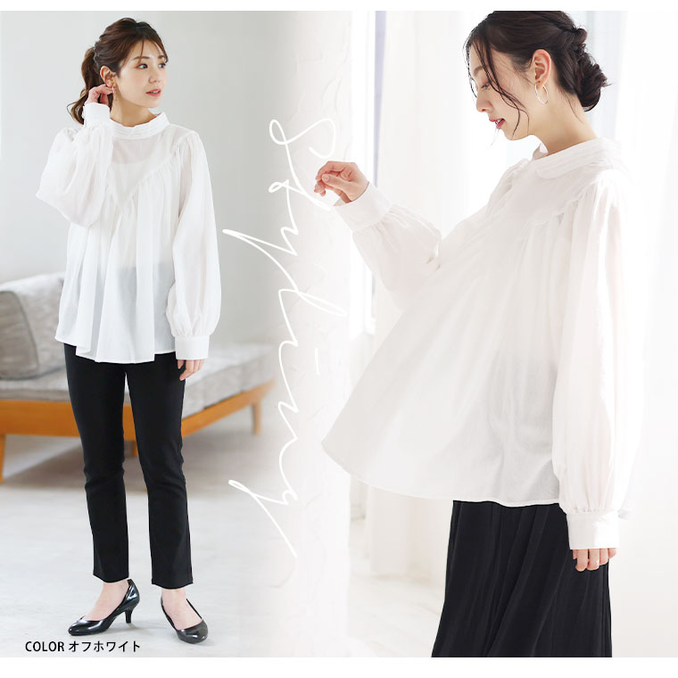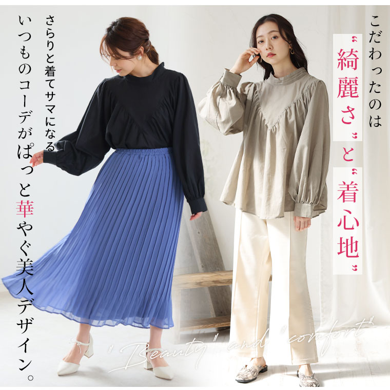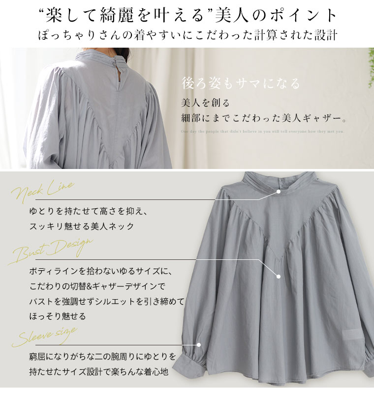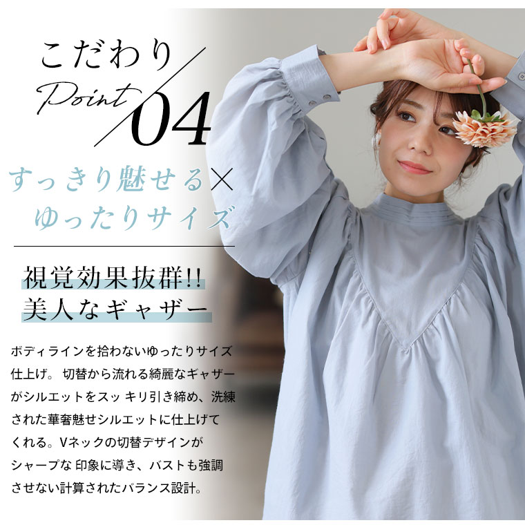 【effortless mode】デコルテギャザー美人ブラウス