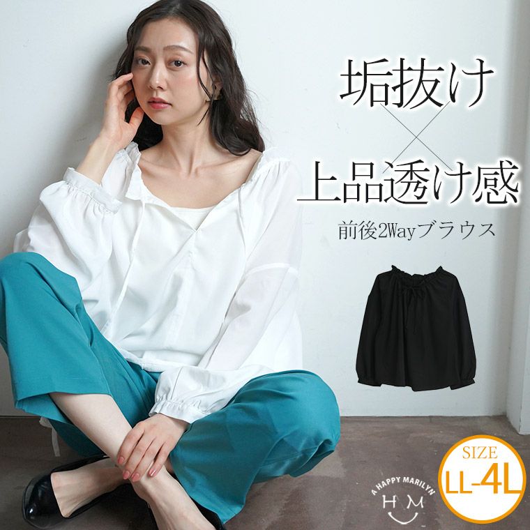 上品な透け感の前後2Wayデザインブラウス