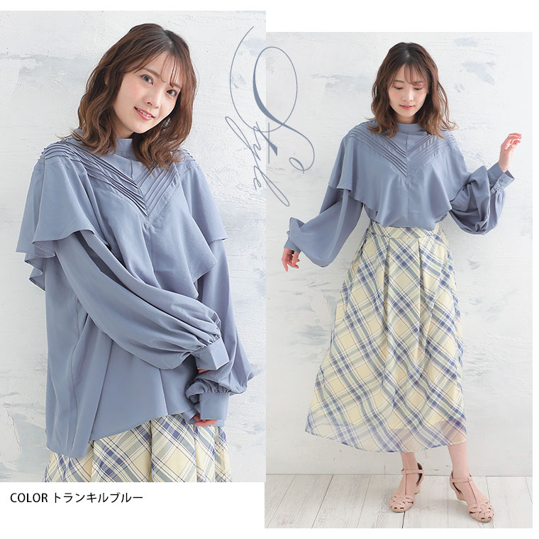 4. 大きいサイズ フリルケープ デコルテ ブラウス