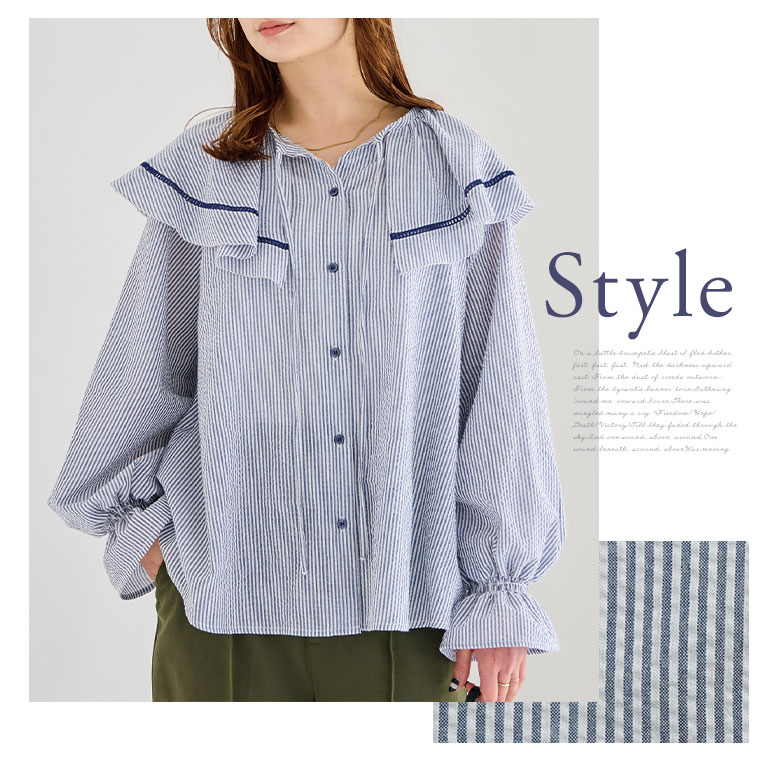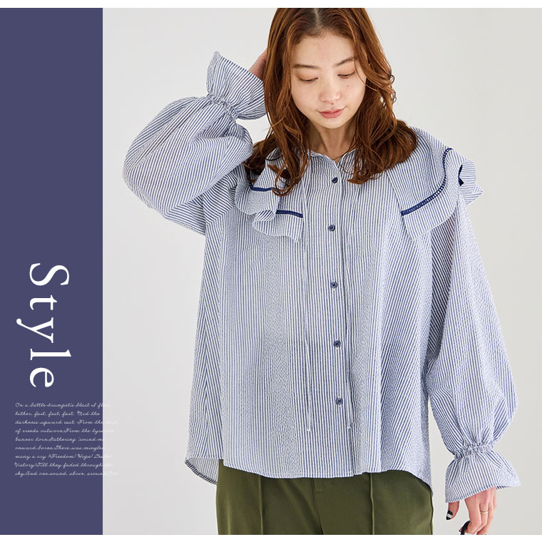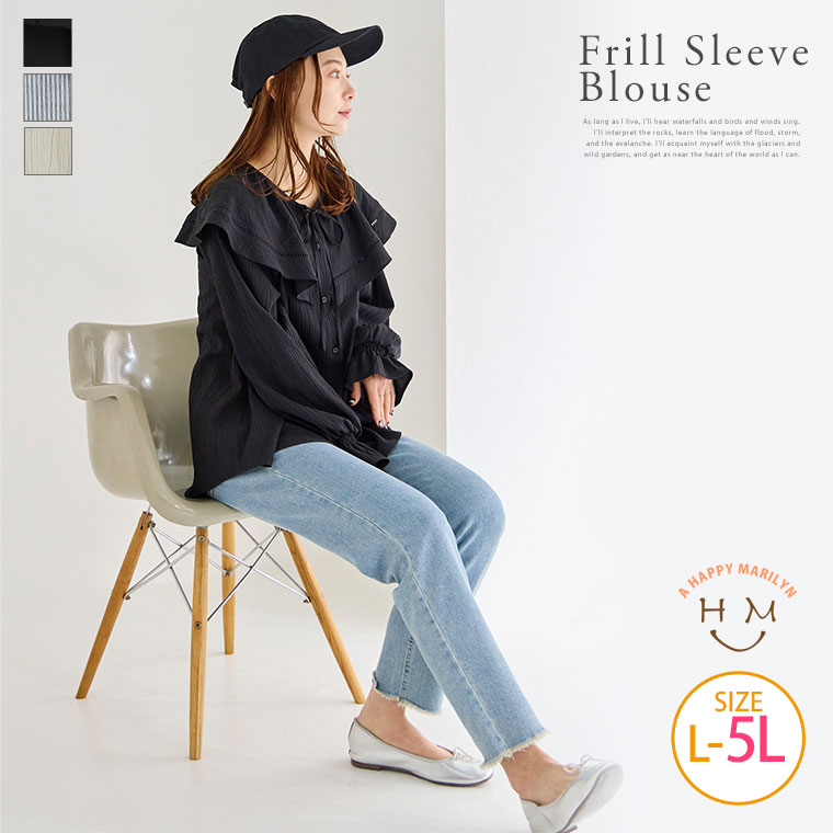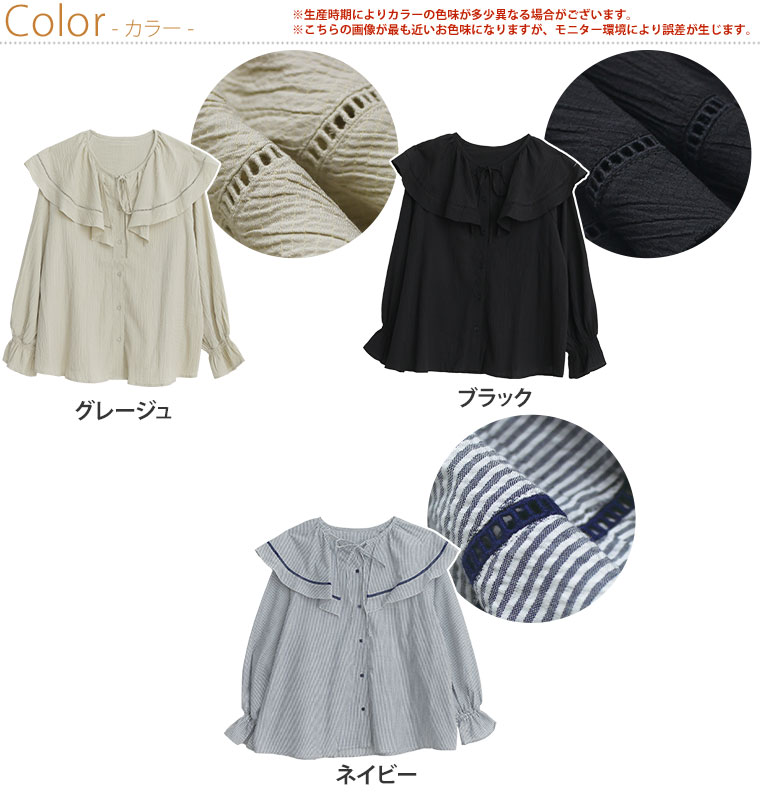 3. 大きいサイズ 【LAVEANGE】楊柳 フリル襟 ブラウス