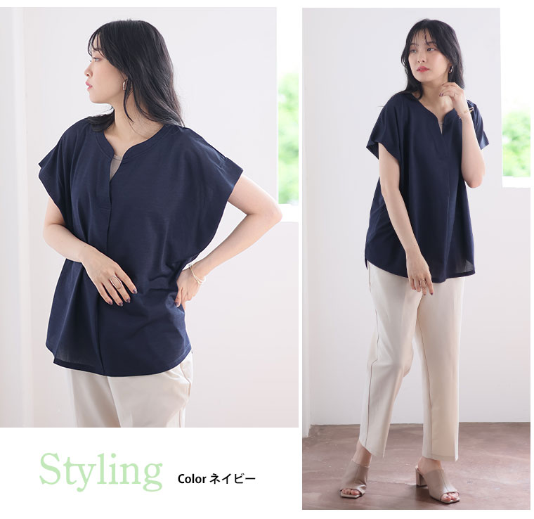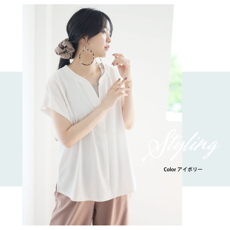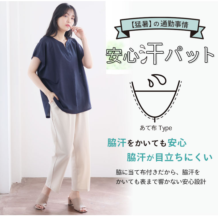 脇パット付で汗っかきさんに嬉しいスキッパーブラウス