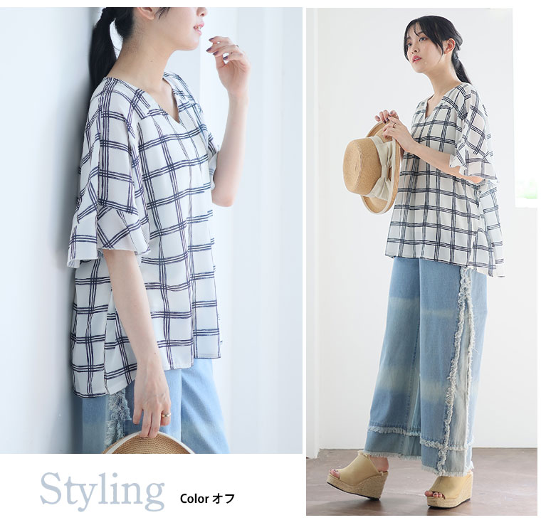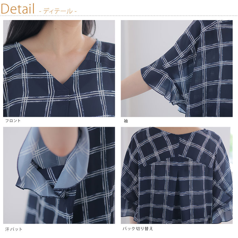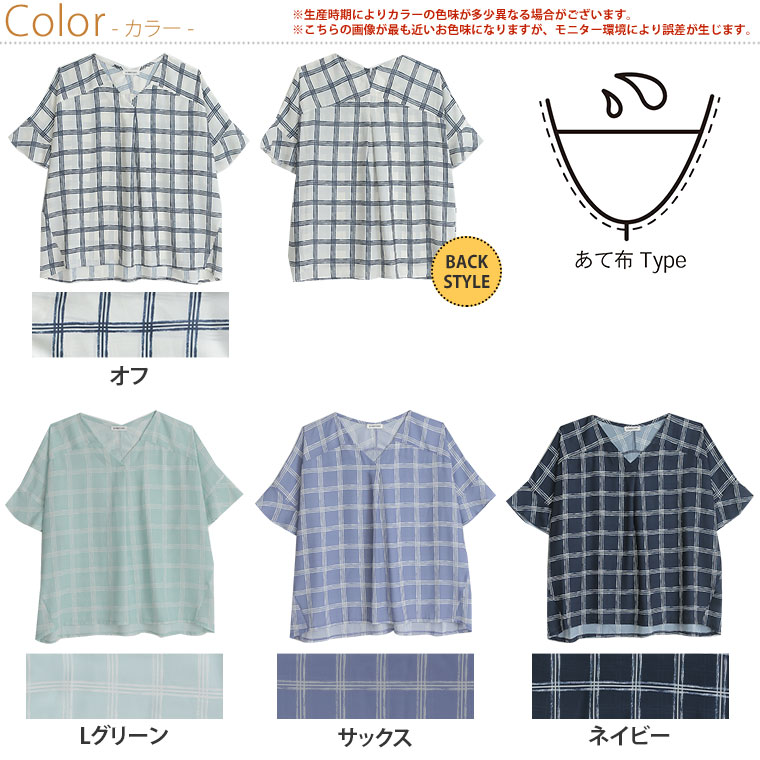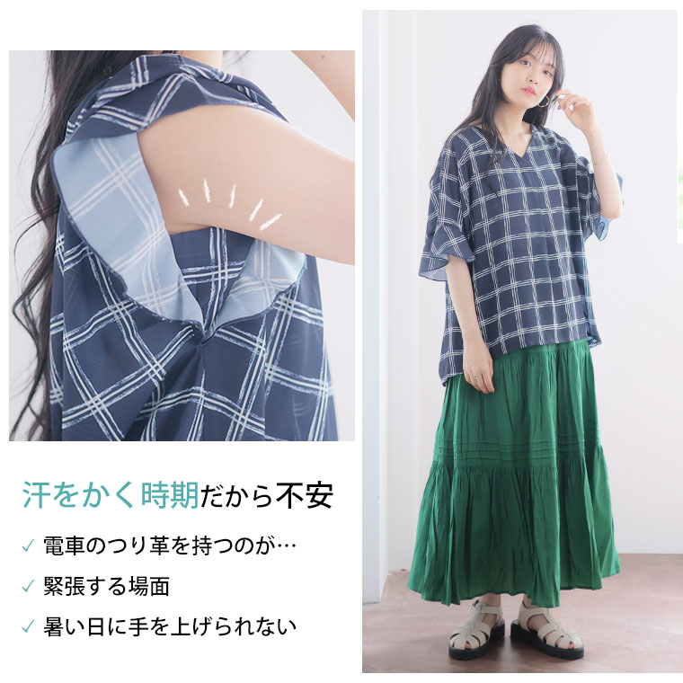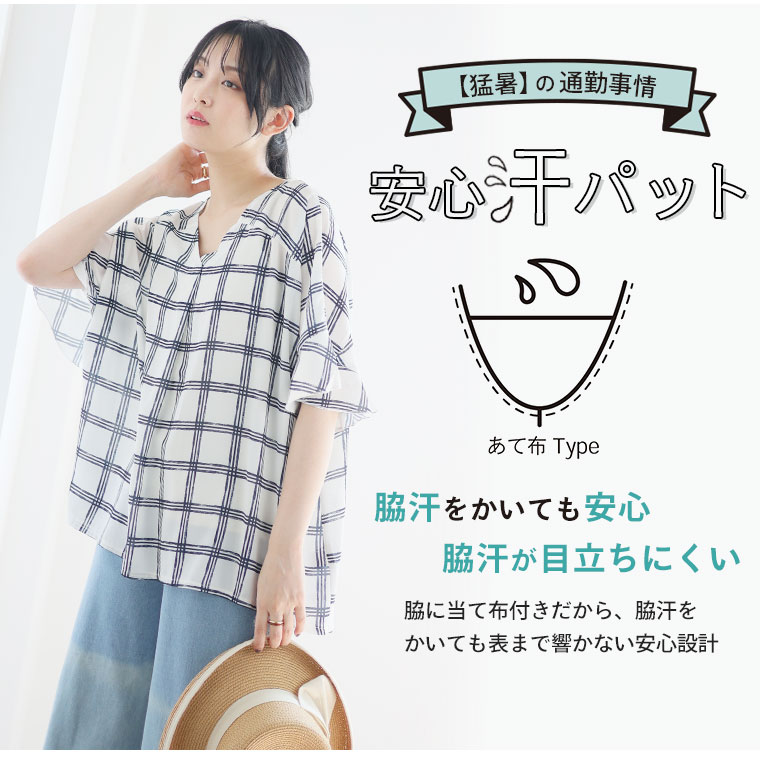 脇パット付で汗っかきさんにぴったりなチェックブラウス