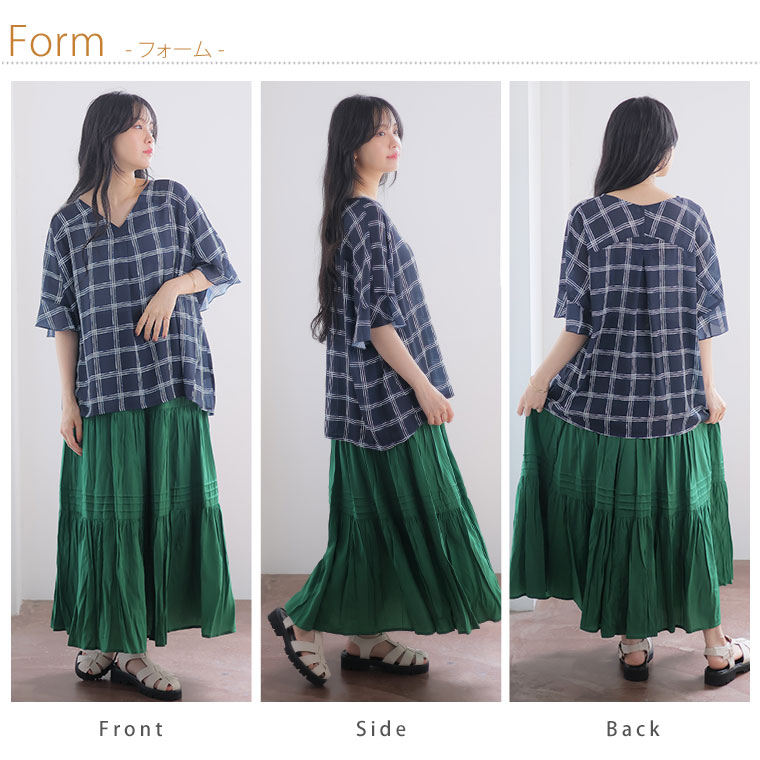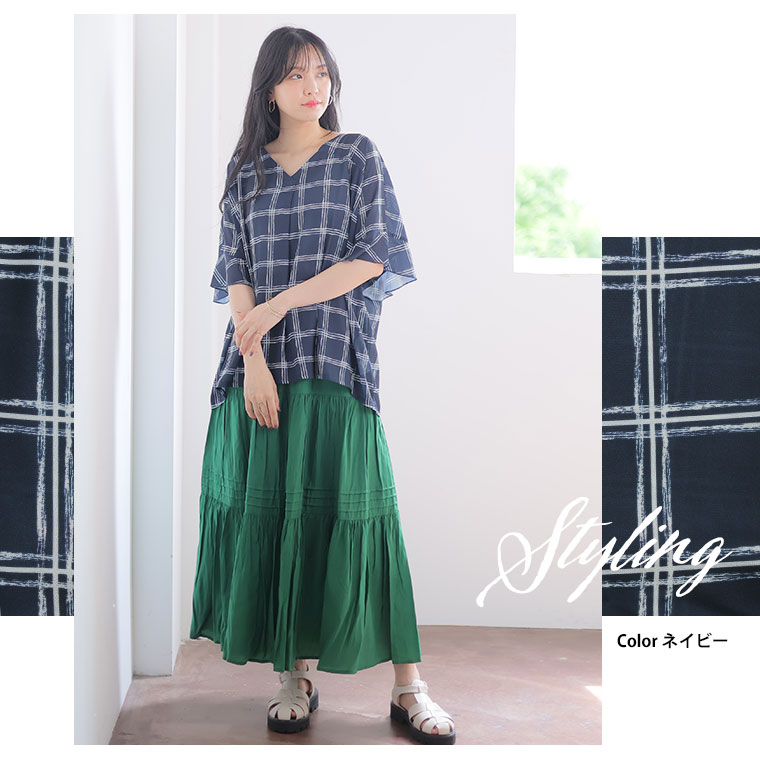 首周りスッキリな前後Vネックでゆったり着れるのにすらりと美人