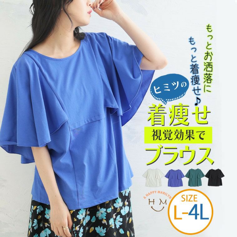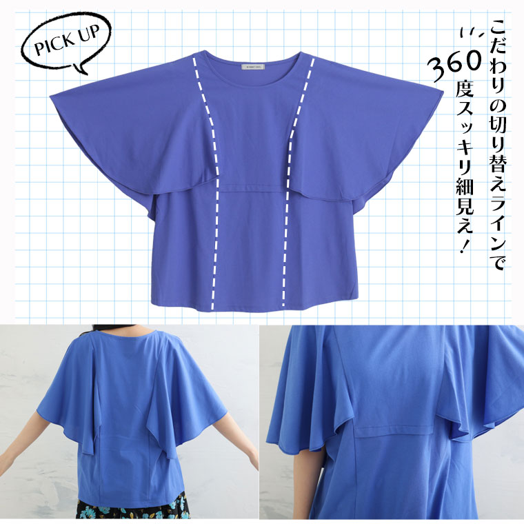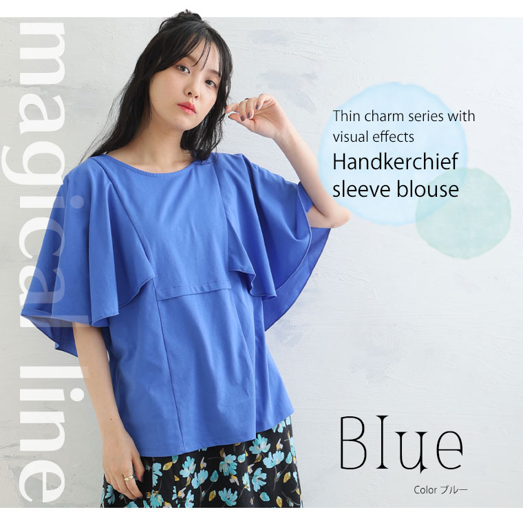 こだわり切り替えとひらりフレア袖で視覚Magic ハンカチーフスリーブカットブラウス