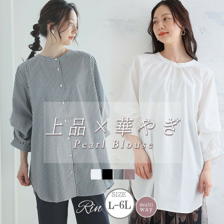 洗練された大人女性らしい、パールボタンを使用したシャツチュニック