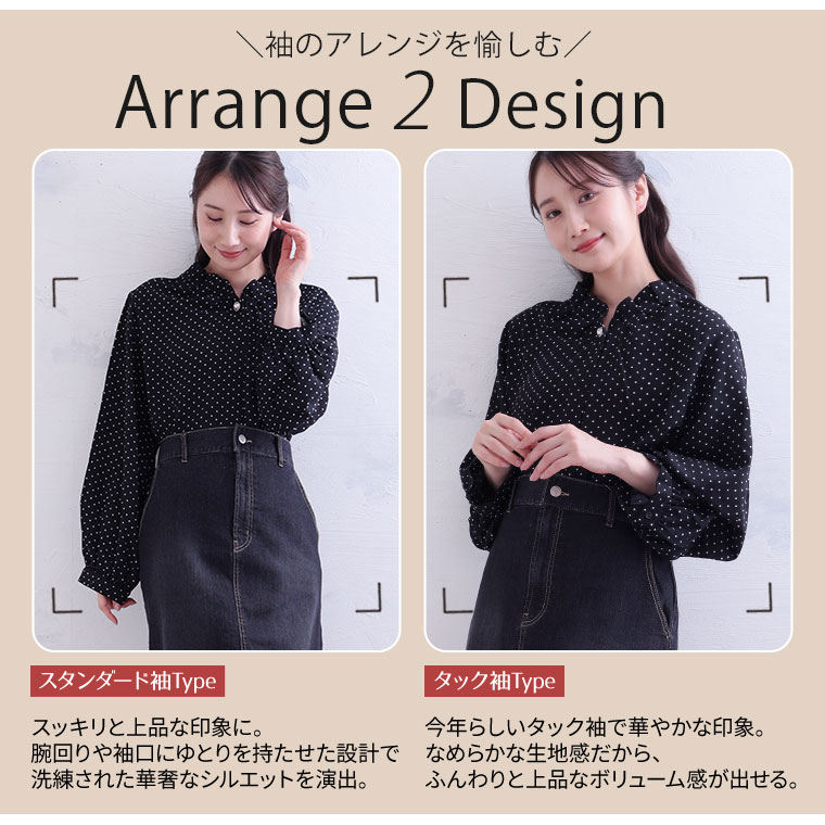 袖2WAYデザイン! 1枚2役、華やぎパールビジュータックブラウス