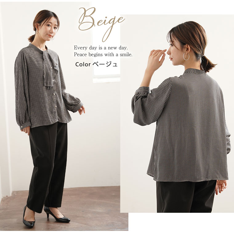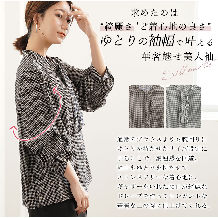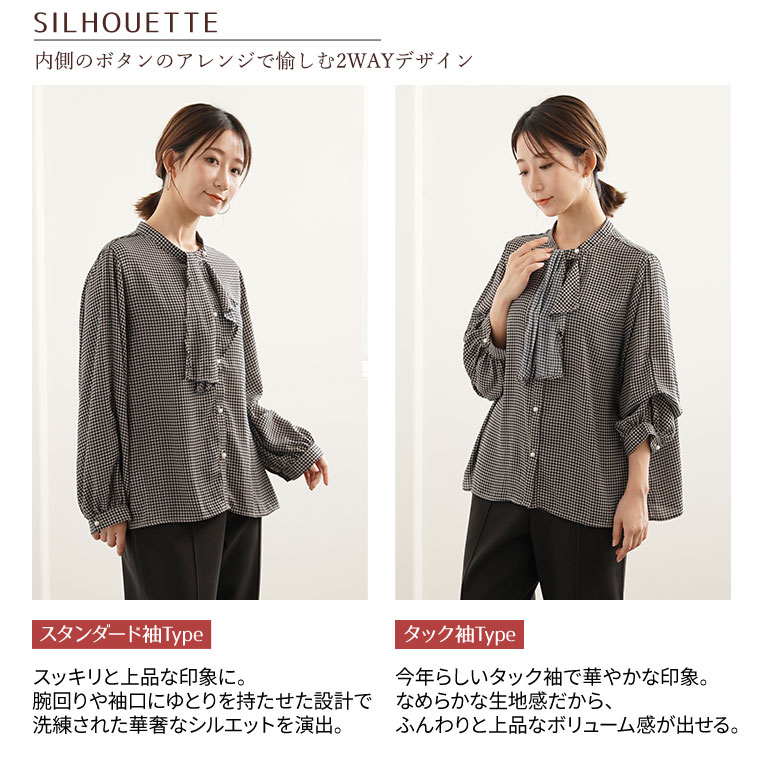 シャツ トップス LL 3L 4L 秋 秋物 秋冬 ぽっちゃり ゆったり リン きれいめ 上品 高見え オフィスカジュアル ママファッション ナチュラル プラスサイズ Rin 2way アレンジ自在 上品 ボウタイブラウス