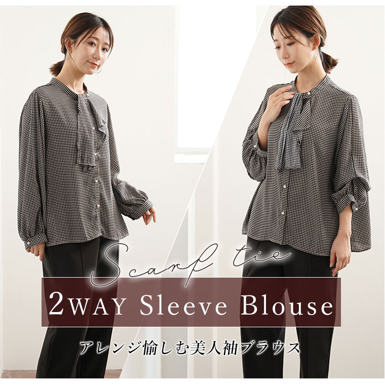 4. 大きいサイズ Rin 2way アレンジ自在 上品 ボウタイブラウス