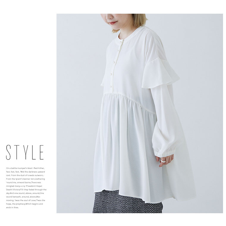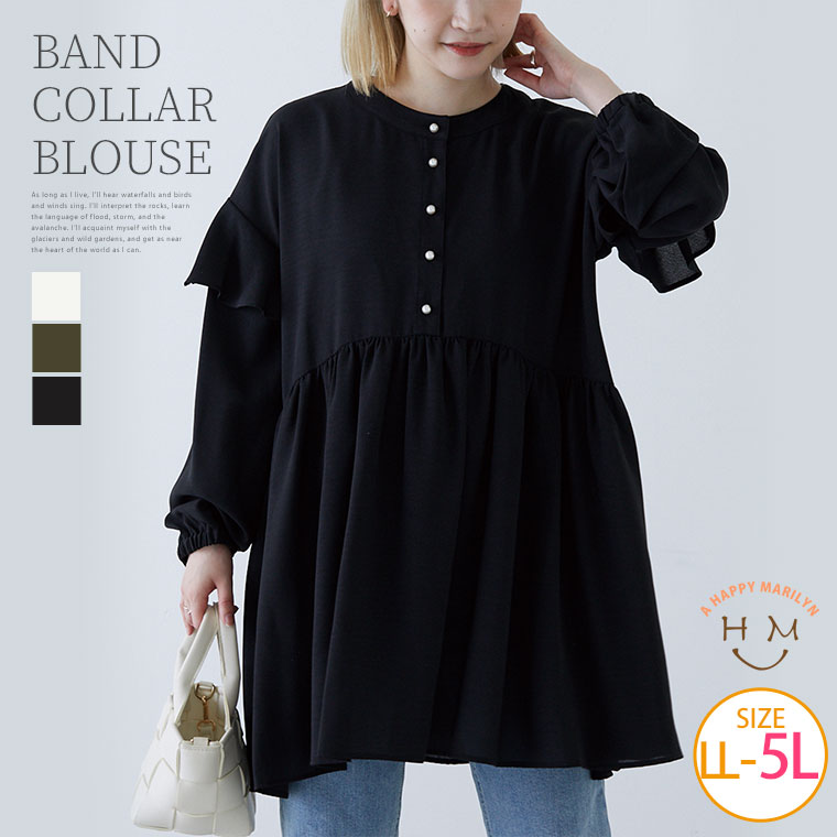 【LAVEANGE】ウエストギャザーバンドカラーブラウス