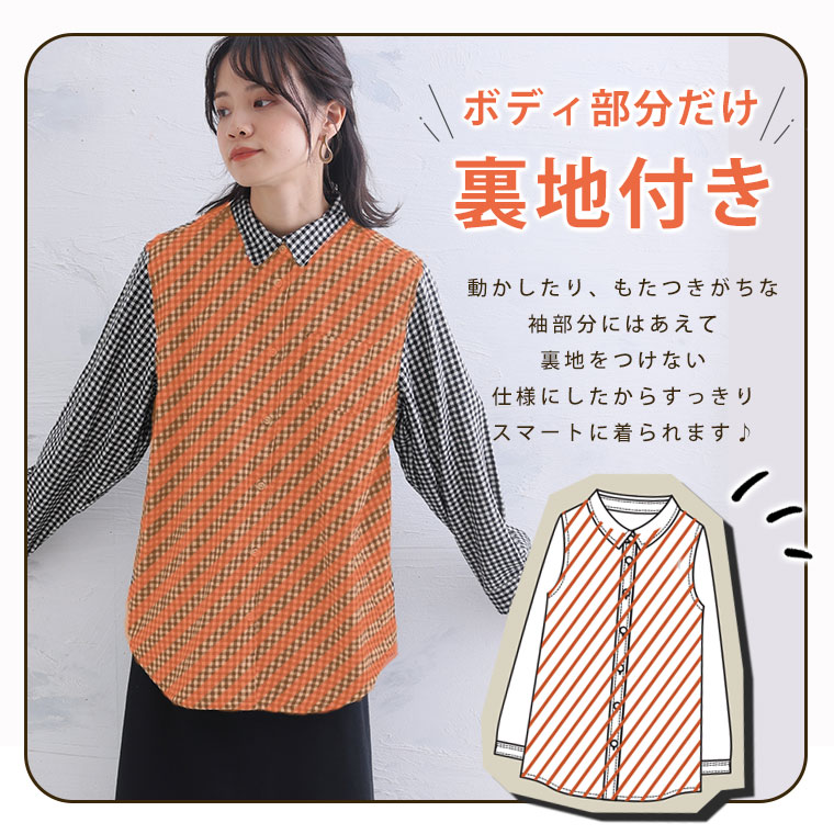 身頃の裏地がフリース素材でほこほこあったか 腕周りの動きやすさにもこだわったシンプルシャツ