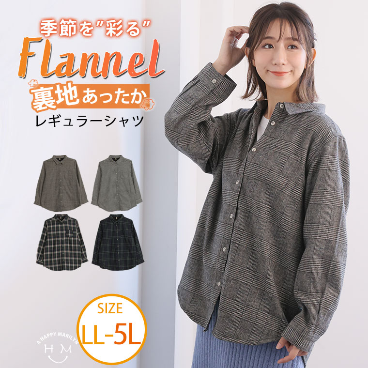 トップス ブラウス LL 3L 4L 5L 冬 冬物 冬服 ぽっちゃり ゆったり あったか 暖かい 冬シャツ シンプル ベーシック かわいい カジュアル ナチュラル プラスサイズ 裏フリース レギュラーシャツ フランネル