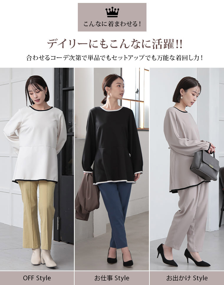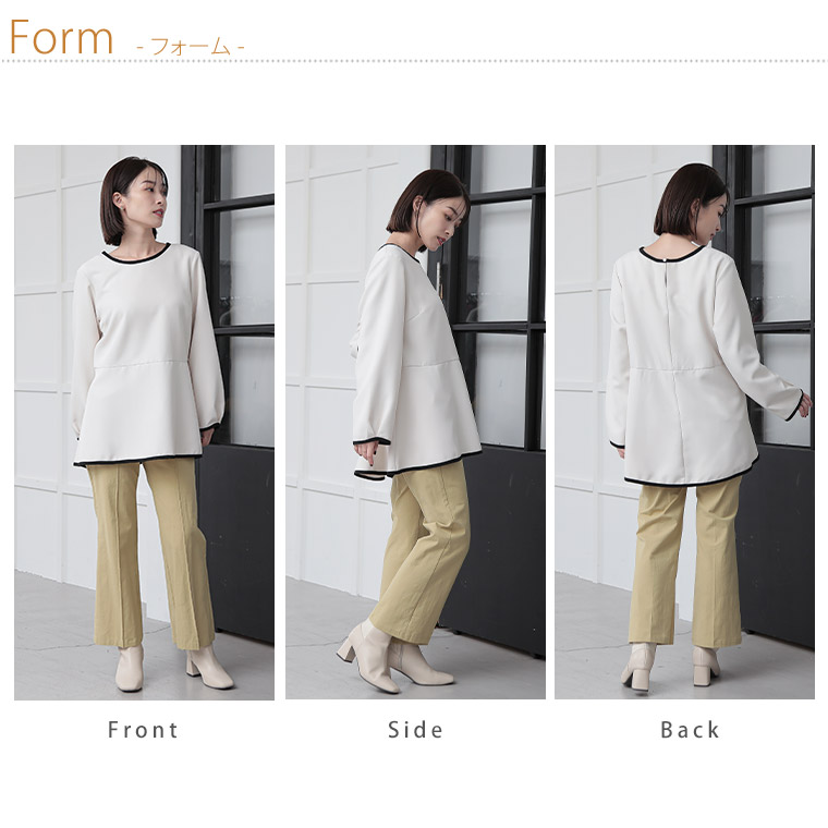 サイズ単位:cm 身丈 ペプラム丈 バスト 天幅 肩幅 アームホール 二の腕周り 袖丈 袖口周り ウエスト(切替) 裾周り 素材/透け感