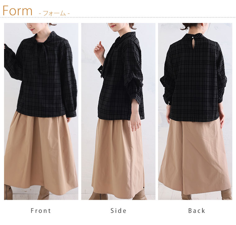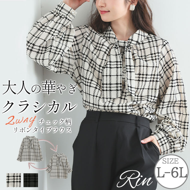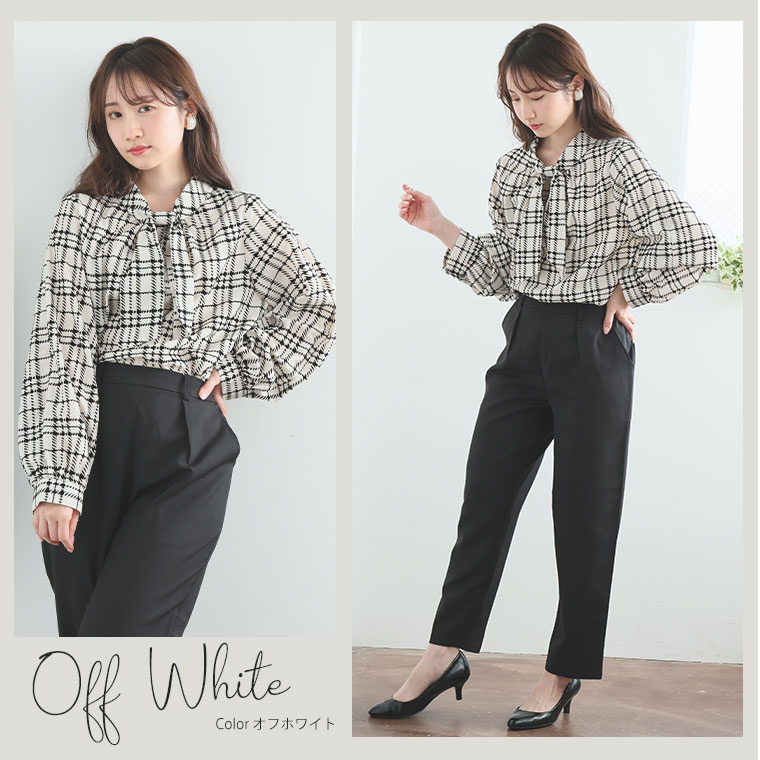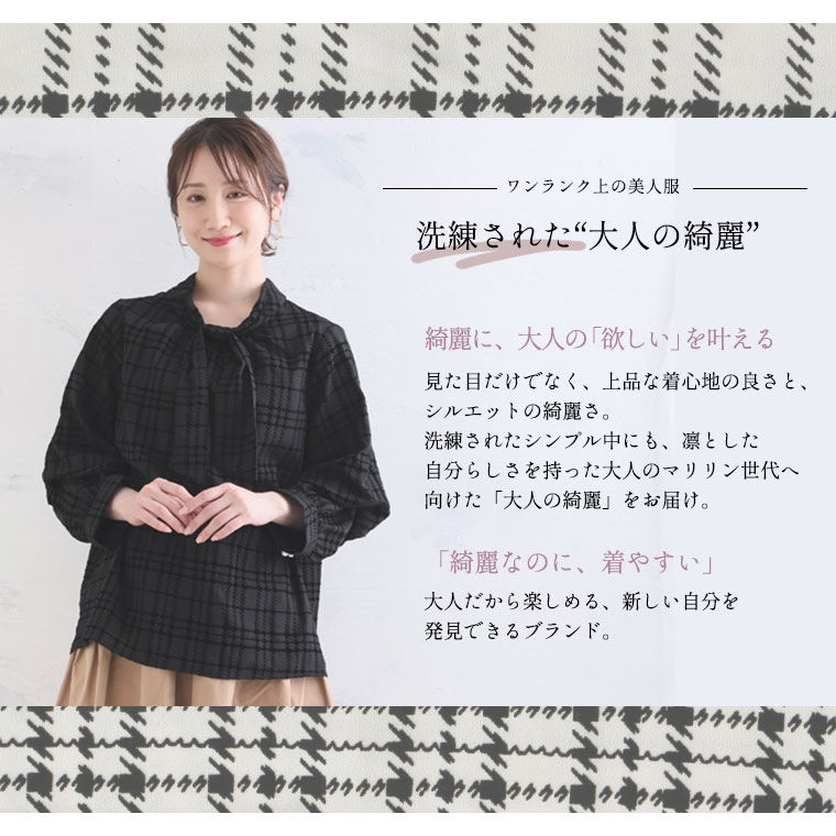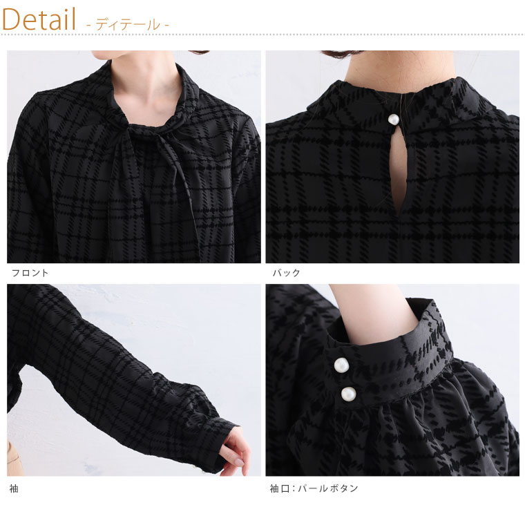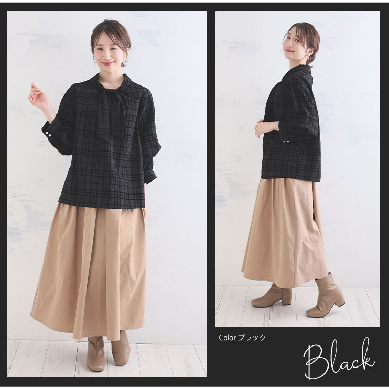 好みでシルエットが変えられる 華やぎ上品2WAYチェックフロッキーブラウス