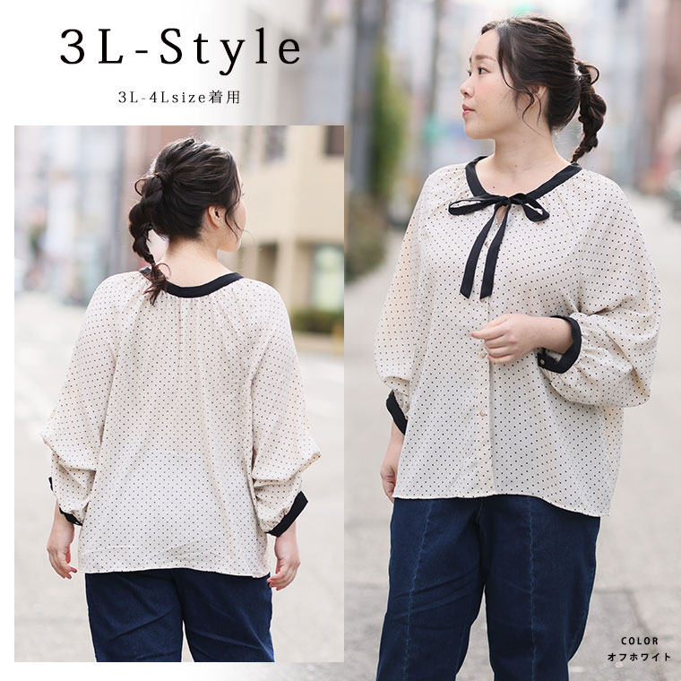 シャツ トップス LL 3L 4L 5L 6L リン キレイめ 上品 高見え ママファッション プラスサイズ Rin ポーラドット マルチウェイ ブラウス オフィス 大人 着やせ 体型カバー ビジネス 通勤 ママ 【セレモニー】