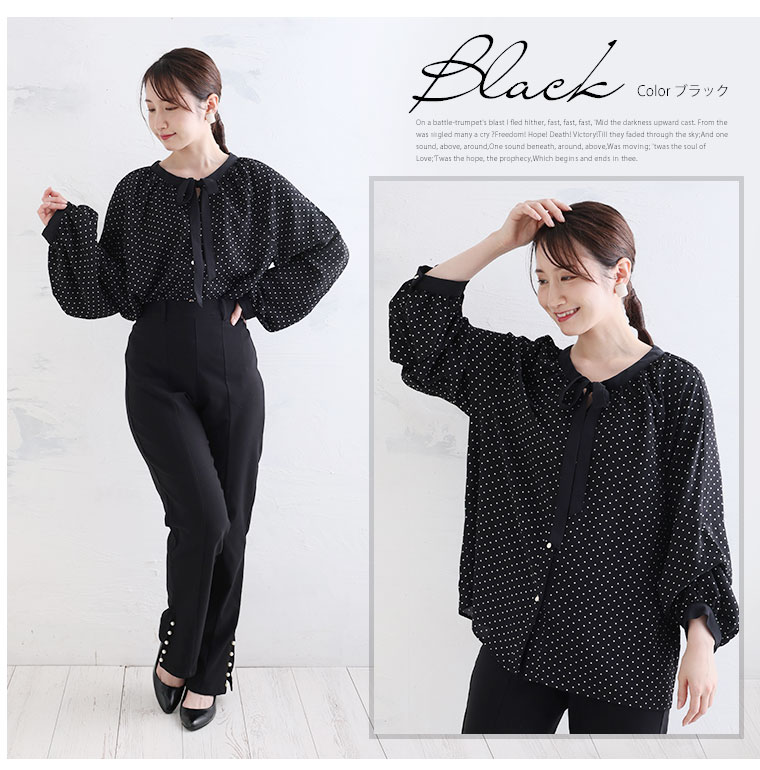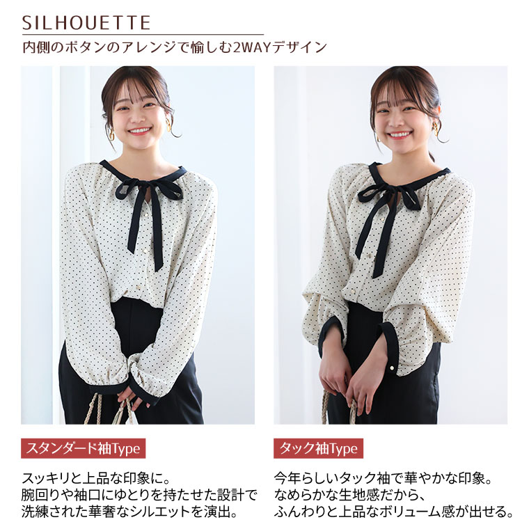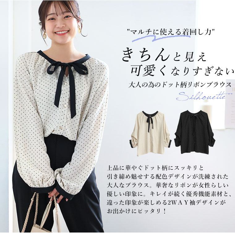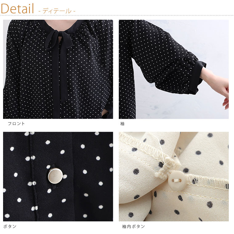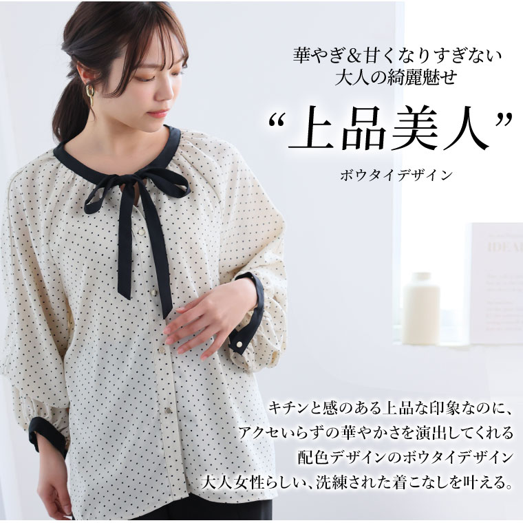 きちんと見えて可愛くなりすぎない大人の為のドット柄リボンブラウス