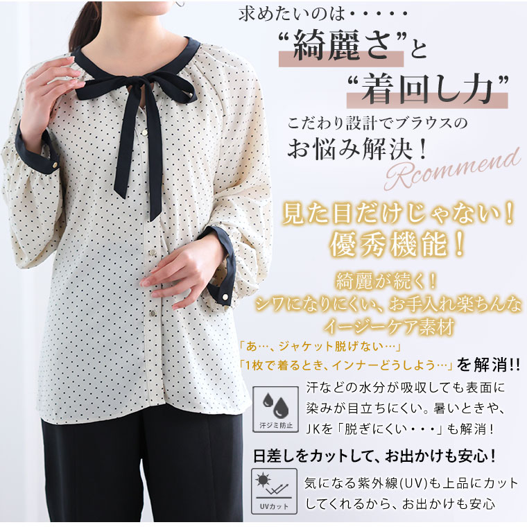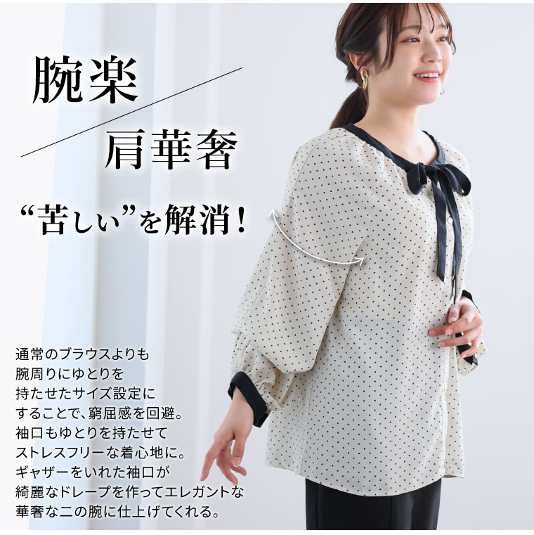 3. 大きいサイズ Rin ポーラドット マルチウェイ ブラウス オフィス 大人 着やせ 体型カバー ビジネス 通勤 ママ 【セレモニー】