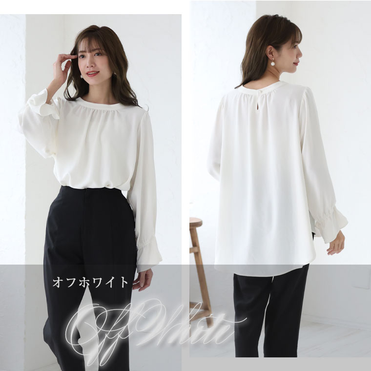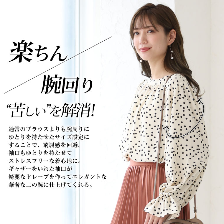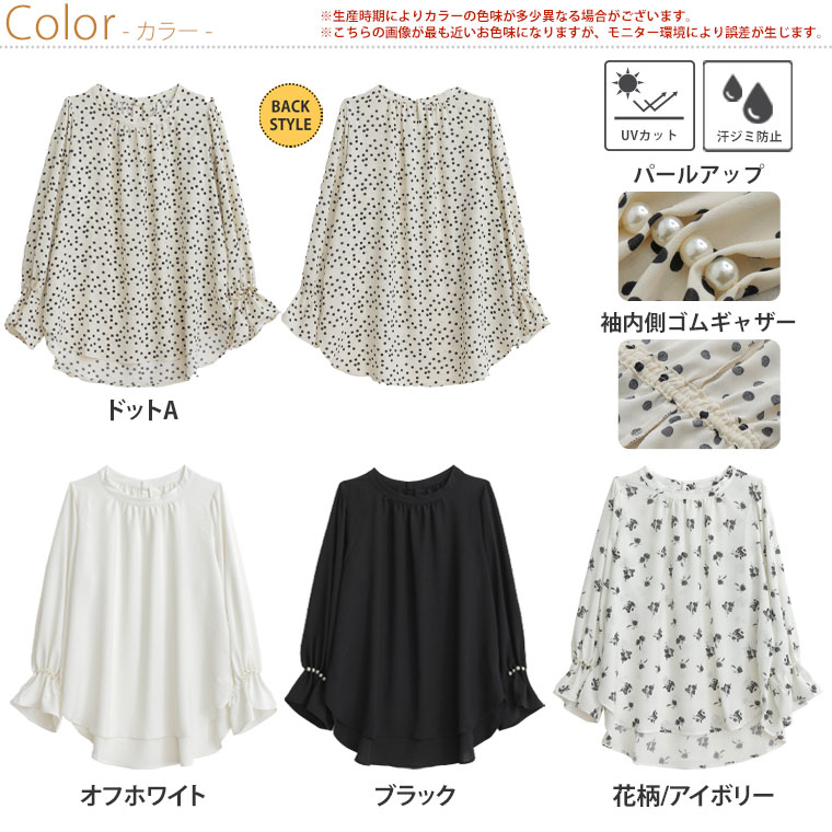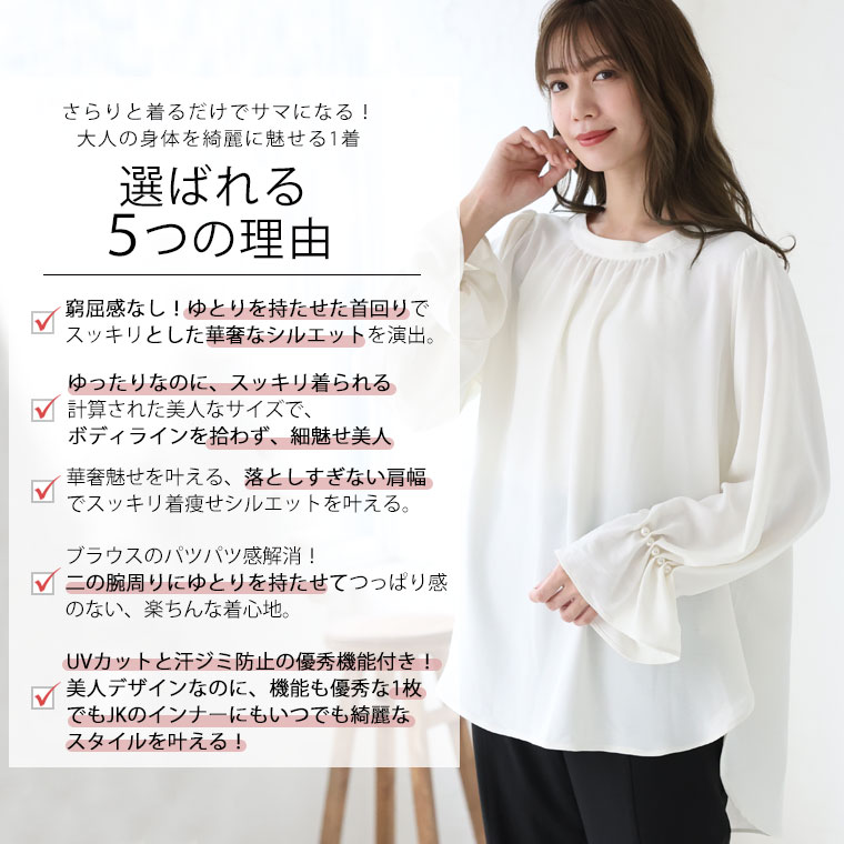 6. 大きいサイズ Rin お悩み解消! UVカット 汗染み防止 ポーラ袖 ギャザーブラウス オフィス 大人 着やせ 体型カバー ビジネス 通勤 ママ セレモニー uv 【セレモニー】