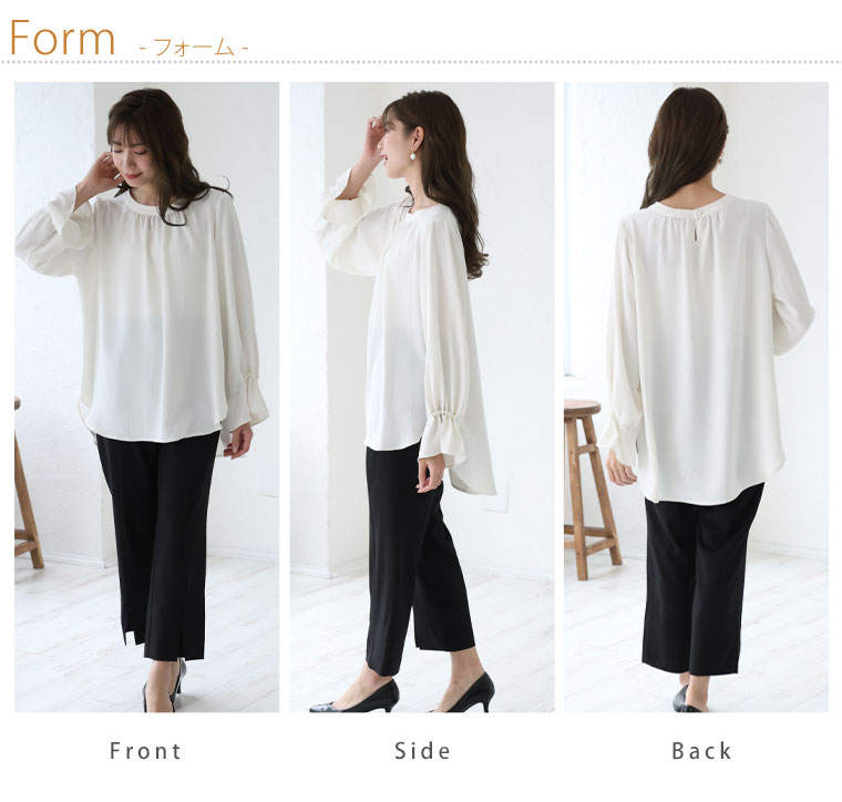4. 大きいサイズ Rin お悩み解消! UVカット 汗染み防止 ポーラ袖 ギャザーブラウス オフィス 大人 着やせ 体型カバー ビジネス 通勤 ママ セレモニー uv 【セレモニー】