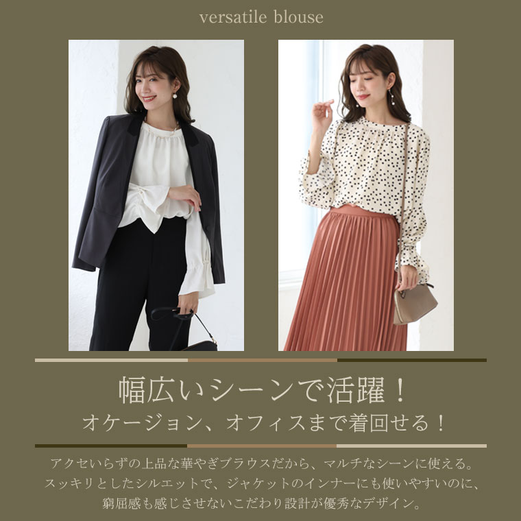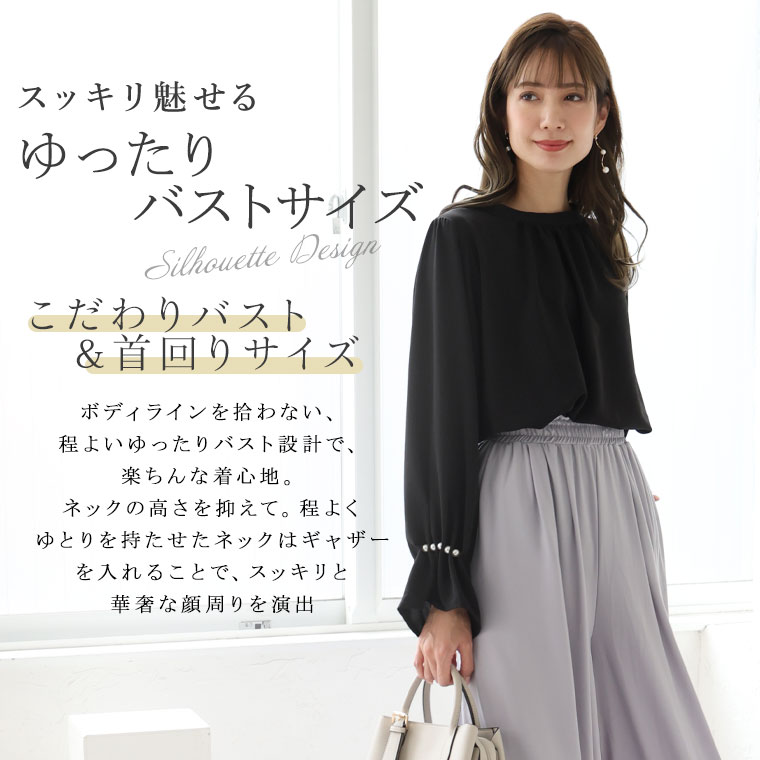 トップス LL 3L 4L 5L 6L 春 春物 春服 ぽっちゃり オケージョン プラスサイズ Rin お悩み解消! UVカット 汗染み防止 ポーラ袖 ギャザーブラウス オフィス 大人 着やせ 体型カバー ビジネス 通勤 ママ セレモニー uv 【セレモニー】