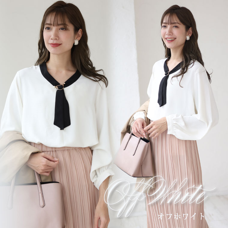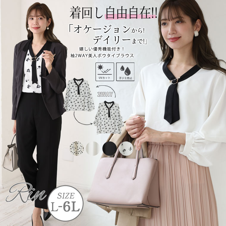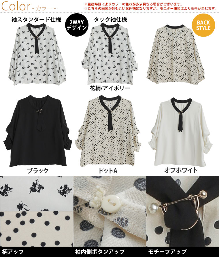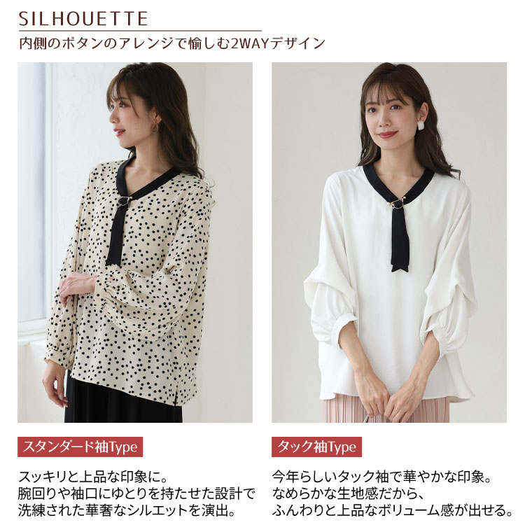 【Rin】ポーラ袖タックパール付き2way袖ブラウス