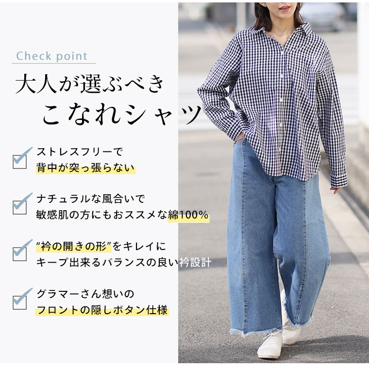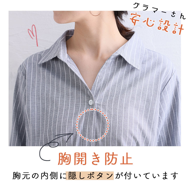 グラマーさん安心設計!隠しボタンでシャツの間が開かない