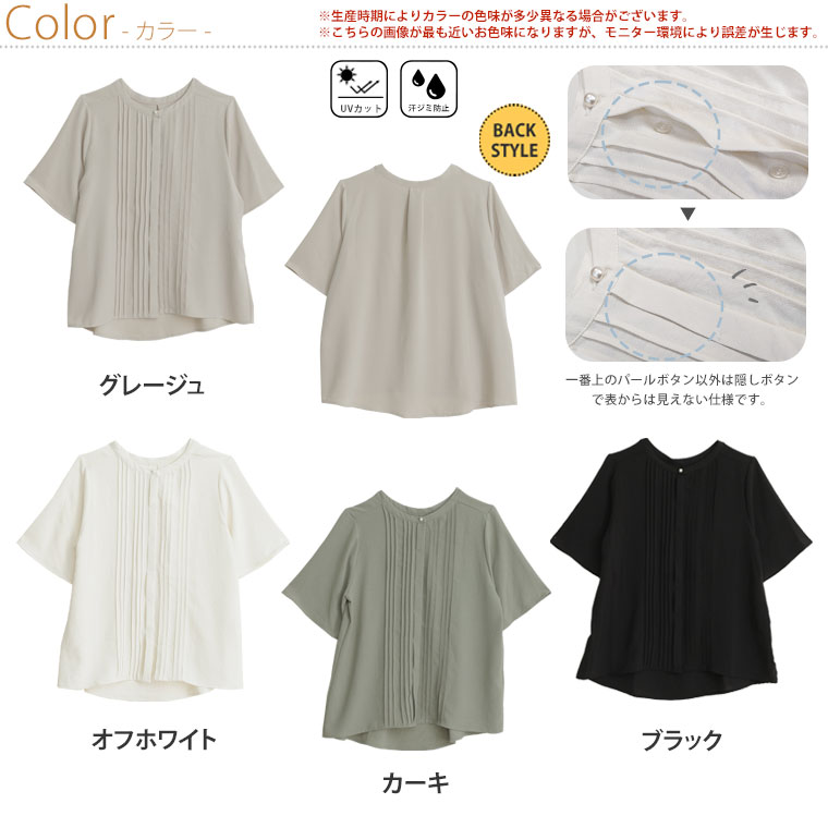 Rin UVカットで日差しも安心 パール付 ピンタックブラウス
