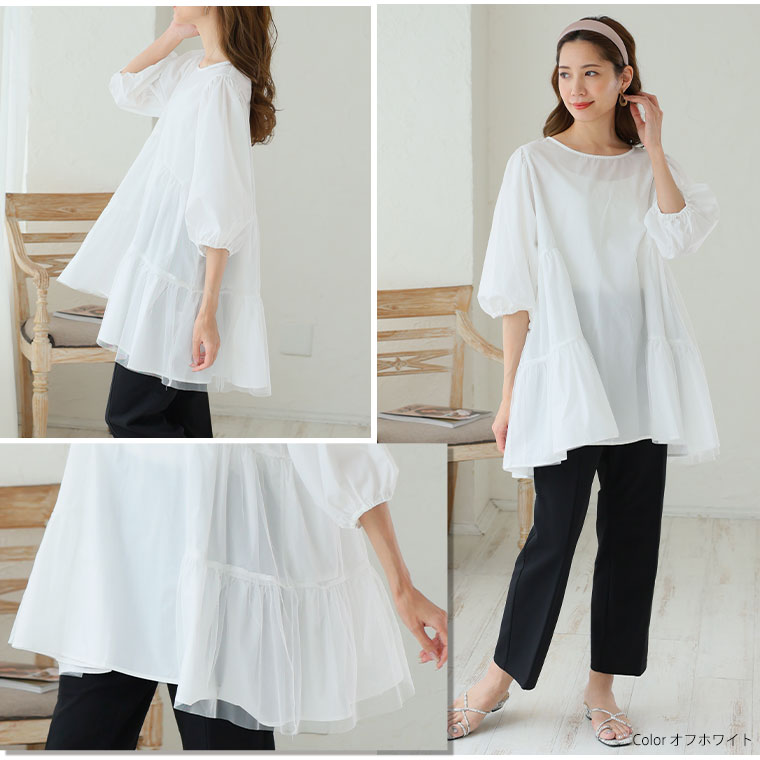 Rin ふんわり大人の可愛さ 華やぎチュール バックティアード チュニック