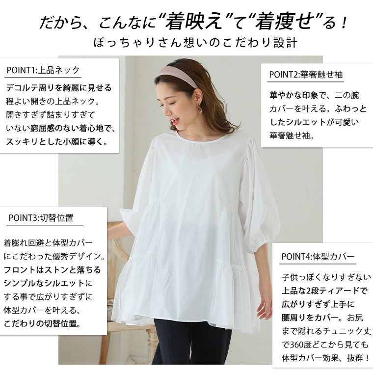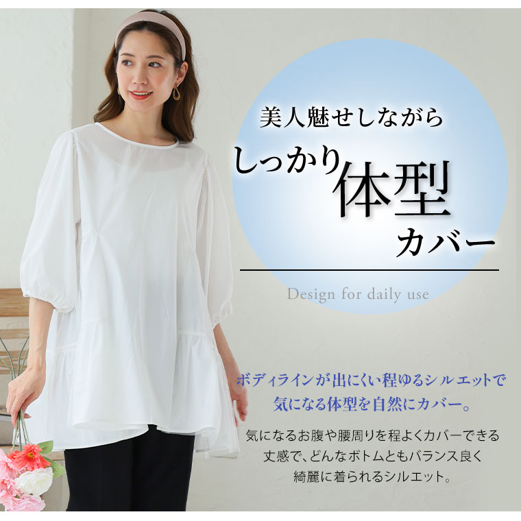 動くたびにふわっひらっと柔らかなシルエットが楽しめる 体型カバーにも優れた拘りデザイン